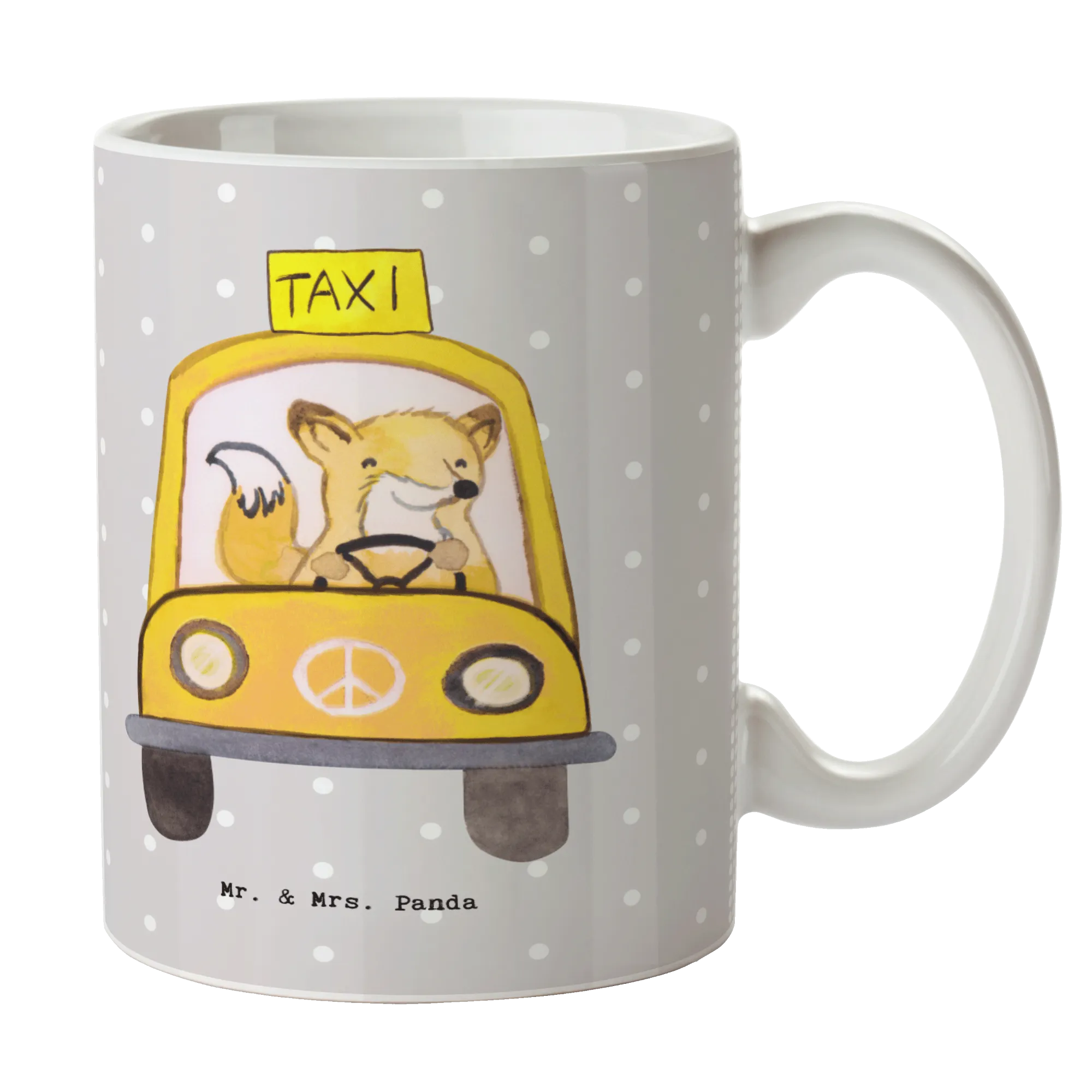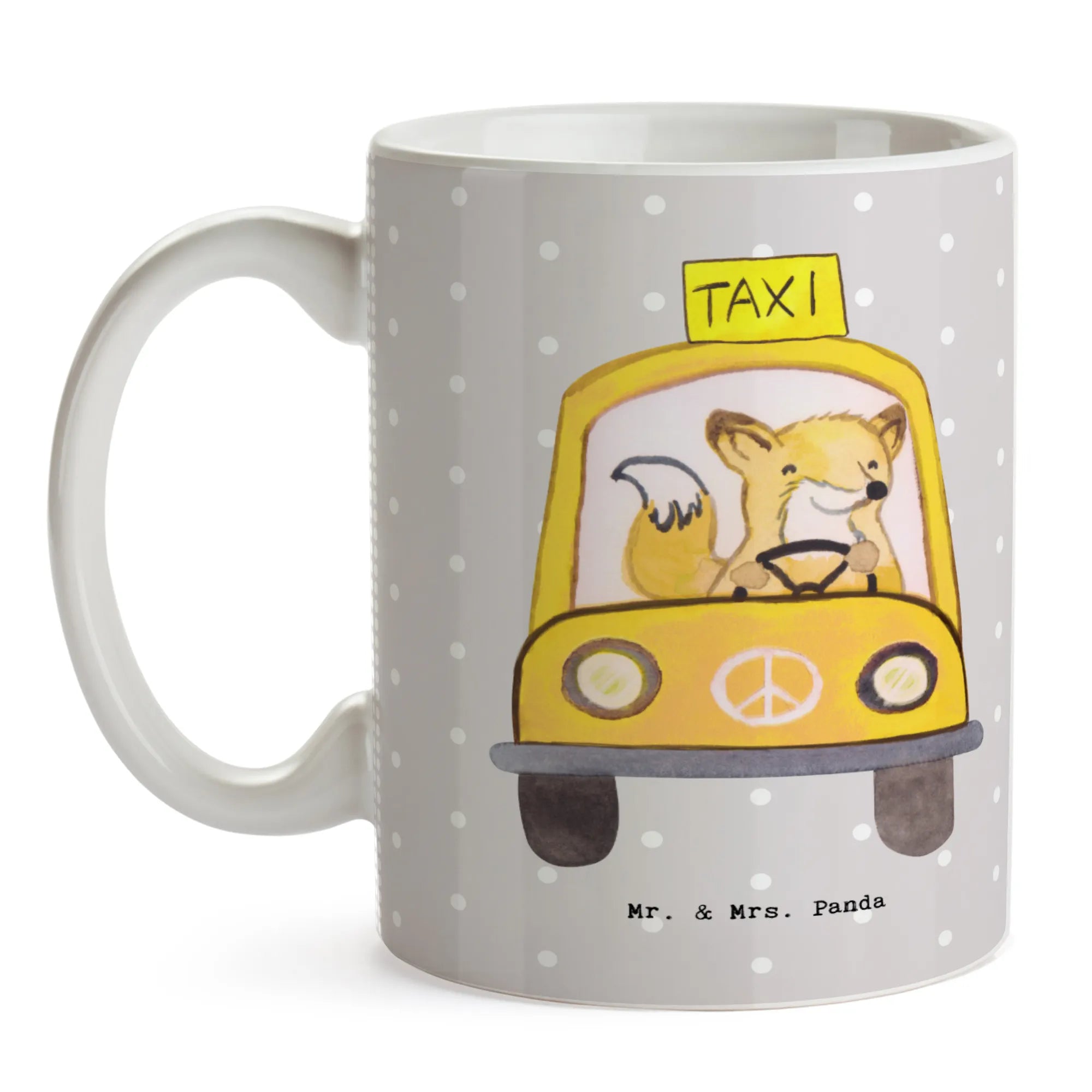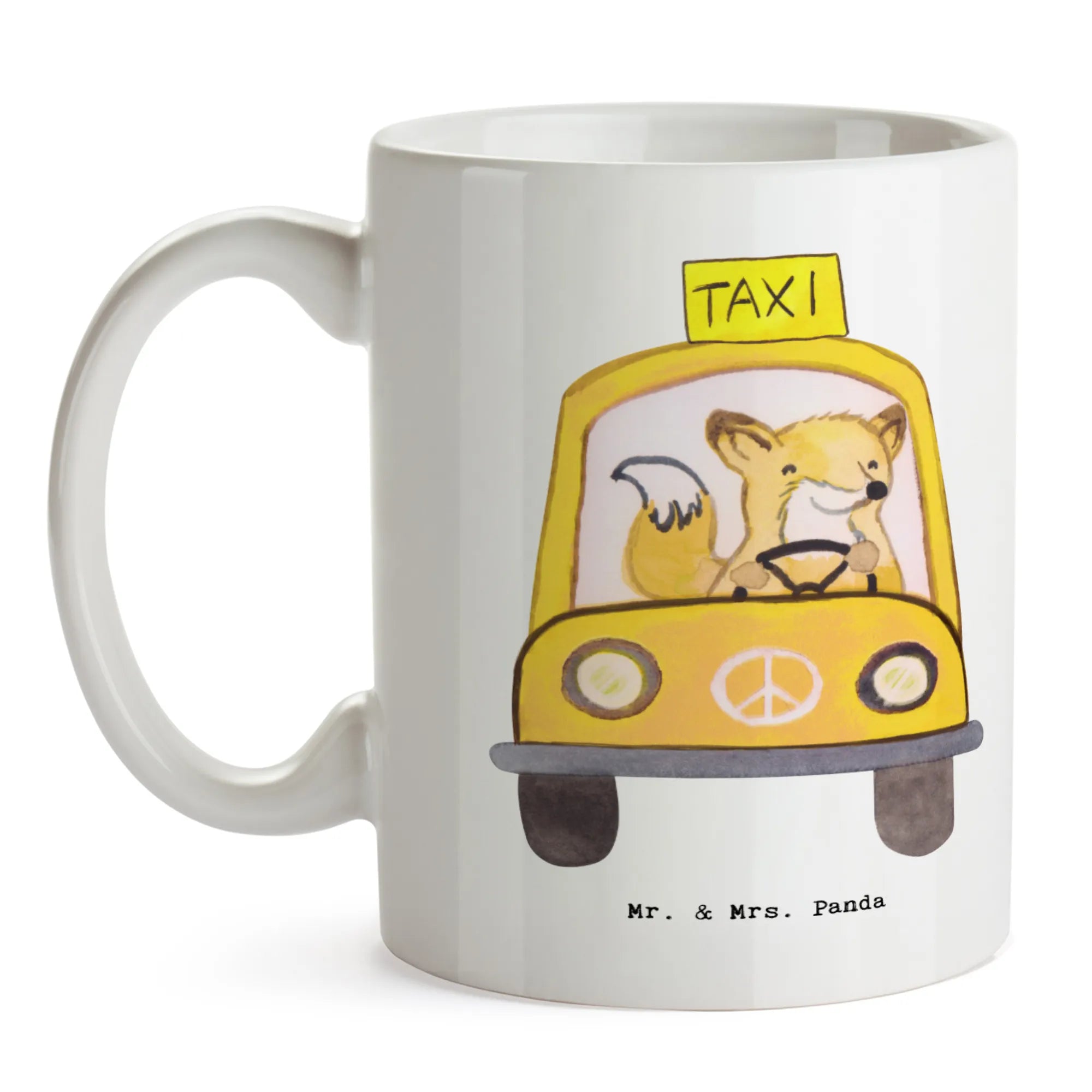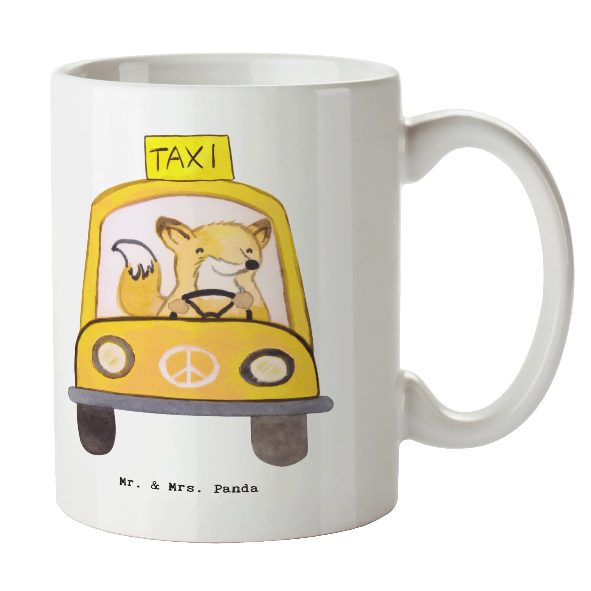 Die perfekte Tasse für alle Taxifahrer und die, die es mit ganzem Herzen sind! Diese wunderschöne spülmaschinenfeste Keramiktasse von Mr. & Mrs. Panda überzeugt mit ihrem einzigartigen Motiv eines süßen Fuchses, der voller Freude in seinem gelben Taxi fährt.