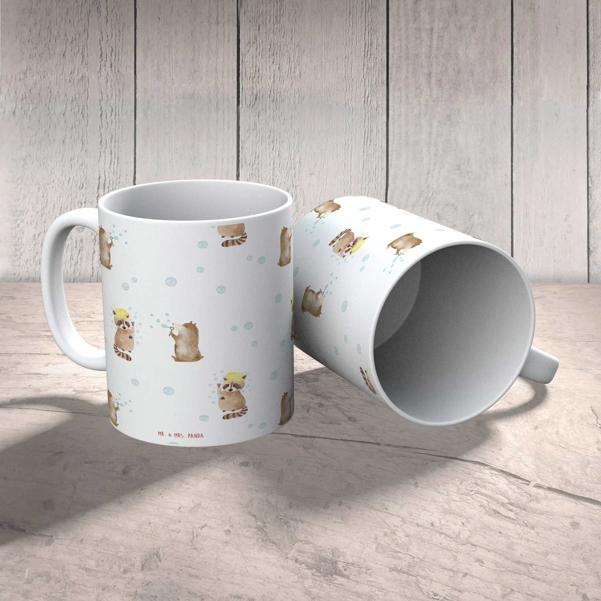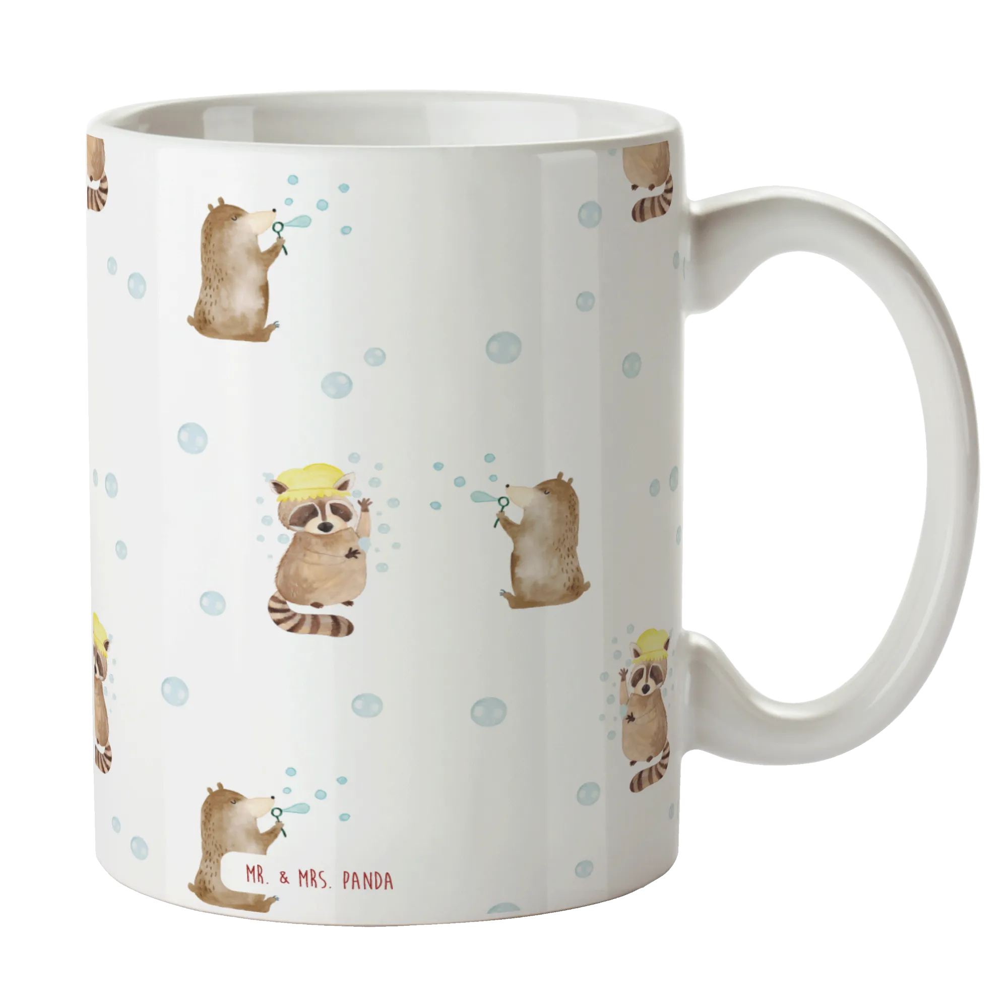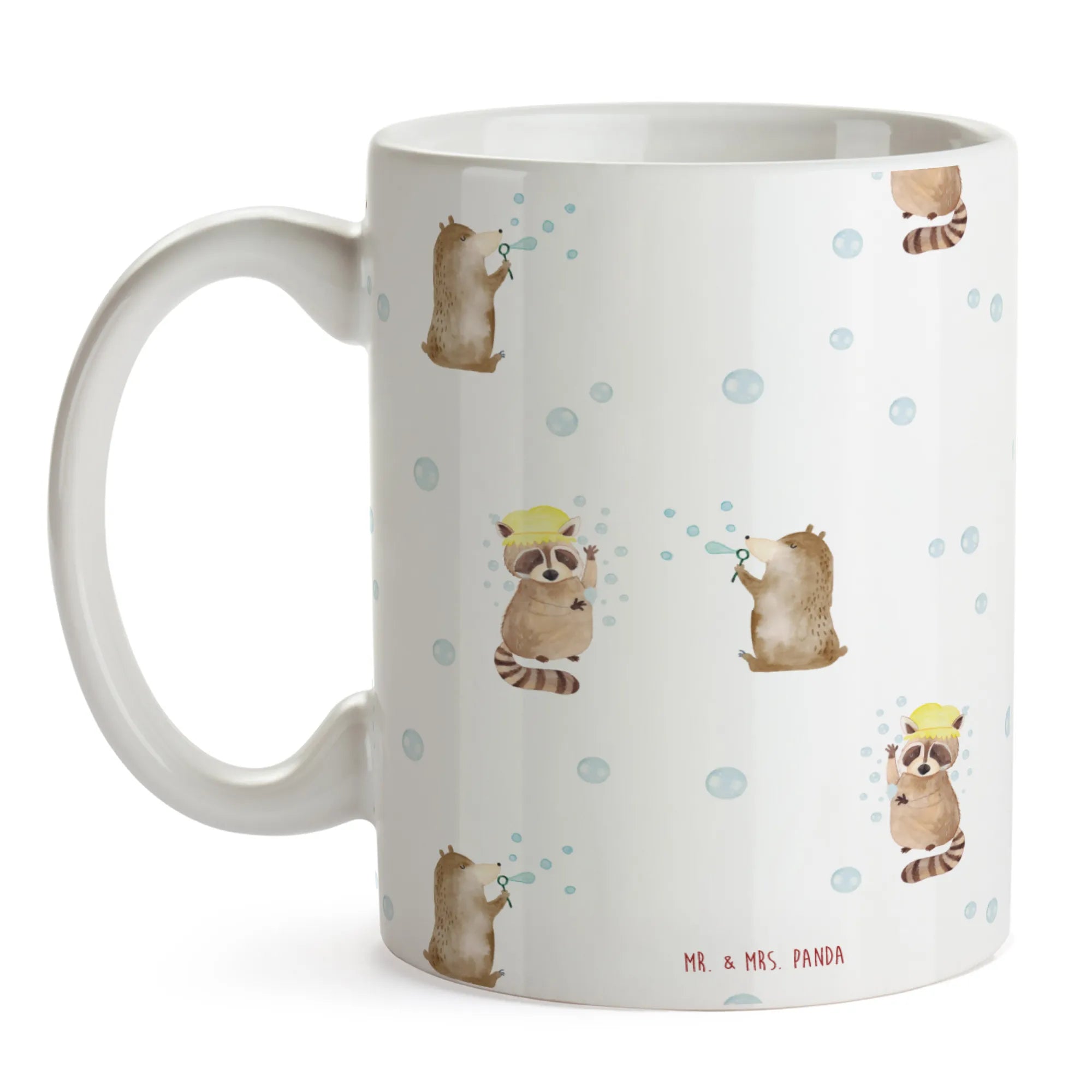 Tasse Waschbär Muster Tasse, Teetasse, Keramiktasse, Tasse mit Zitaten, Porzellantasse, Kaffeetasse, Tasse mit Motiven, Geschenktasse, Bürotasse, Tiermotive, Gute Laune, lustige Sprüche, Tiere, waschen, Tagträumen, Waschbär, Plan, Seifenblasen, Fröhlich