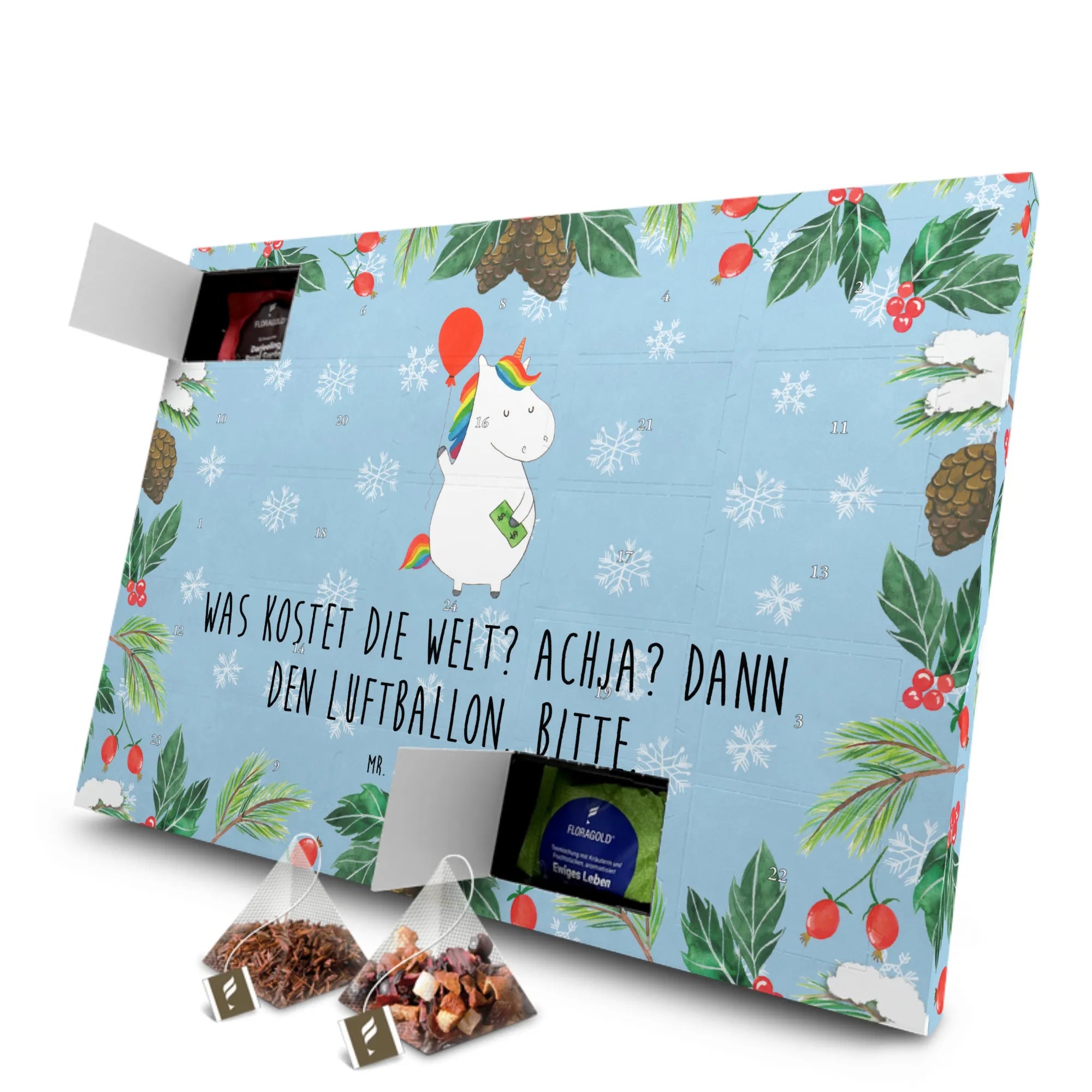 Der wunderschöne Tee Adventskalender Einhorn Luftballon von Mr. & Mrs. Panda ist das perfekte Geschenk für alle, die die zauberhafte Welt der Einhörner lieben! Jeder Tag im Advent wird mit einem hochwertigen Teegenuss gewürzt, denn der Kalender ist mit 24 einzeln verpackten Teesorten im Pyramidenbeutel gefüllt. Egal, ob du Früchtetee, Schwarztee oder Kräutertee bevorzugst – hier ist für jeden Geschmack etwas dabei!