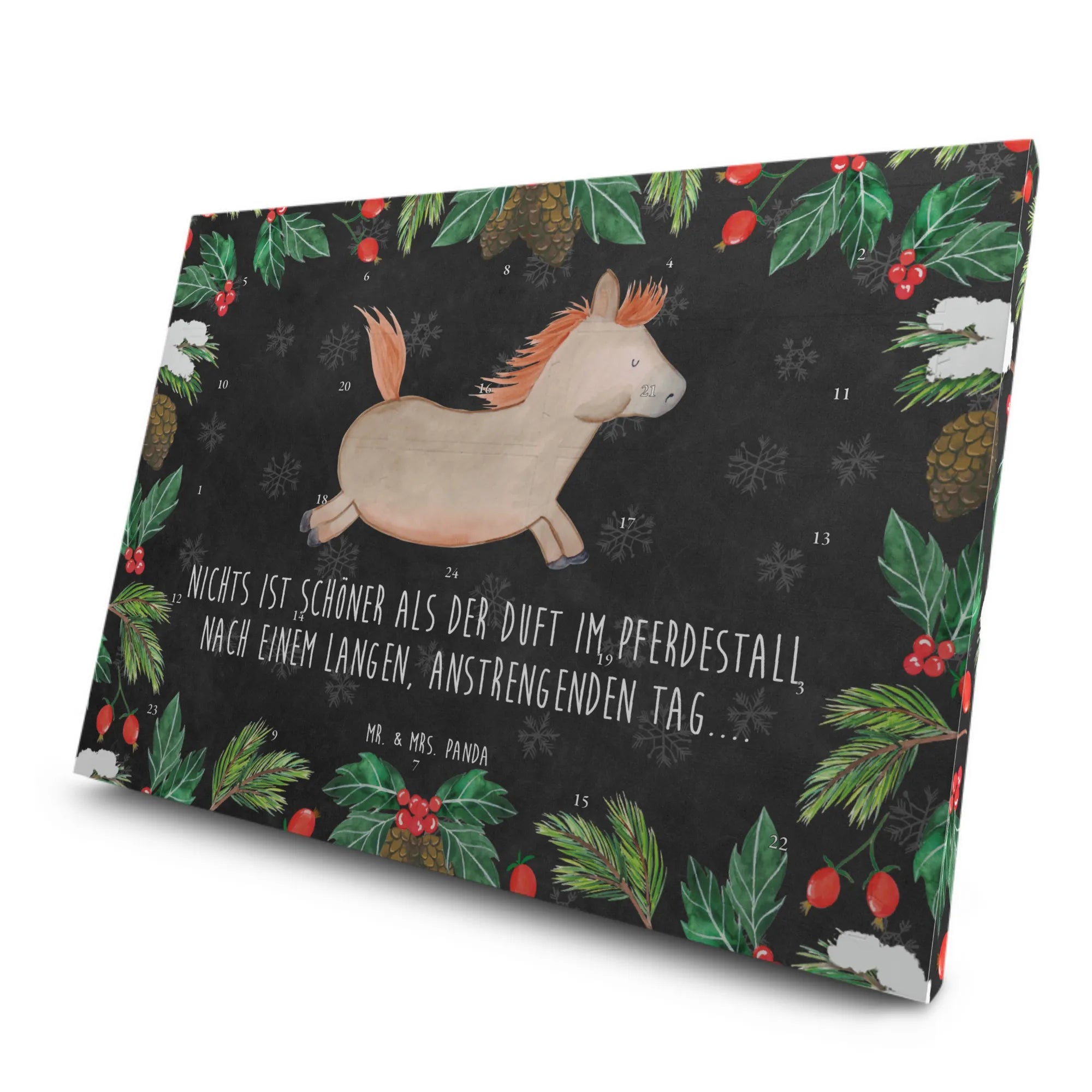 Der Adventskalender ist nicht nur zeitlos und stilvoll, sondern auch mit dem liebevoll gestalteten Motiv, welches ein freudig springendes Pferd zeigt, ein absoluter Blickfang. "Nichts ist schöner als der Duft im Pferdestall nach einem langen, anstrengenden Tag..." – dieser Slogan trifft ins Herz eines jeden Pferdeliebhabers und lässt die Erinnerungen an lange Ausritte und entspannte Stunden im Stall lebendig werden.