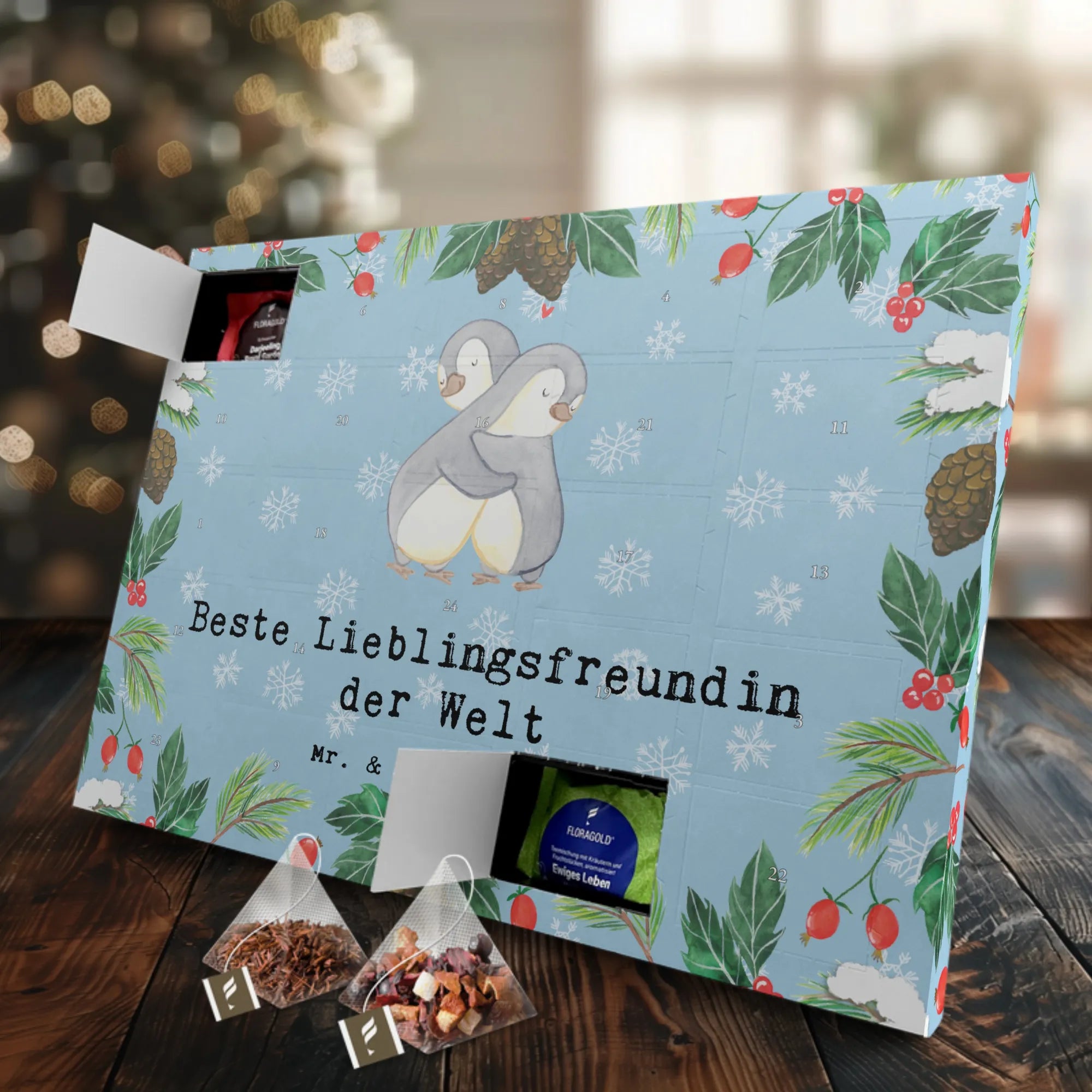 Der Tee Adventskalender "Pinguin Beste Lieblingsfreundin der Welt" von Mr. & Mrs. Panda ist das perfekte Geschenk, um Deiner besten Freundin eine besondere Freude zu bereiten. Mit diesem liebevoll gestalteten Adventskalender aus hochwertigem 300 Gramm Karton bringst Du nicht nur Weihnachtsstimmung, sondern auch eine Portion Liebe in ihr Zuhause.