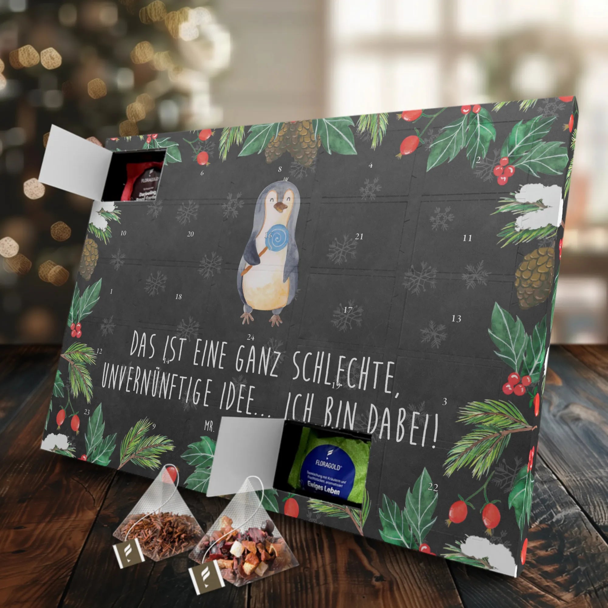 Tee Adventskalender Pinguin Lolli Adventskalender, Adventskalender mit Tee, Tee Adventskalender, Pinguin, Pinguine, Blödsinn, Süßigkeiten, Gauner, Lolli, Ganove, Rabauke, Spruch, Rebell