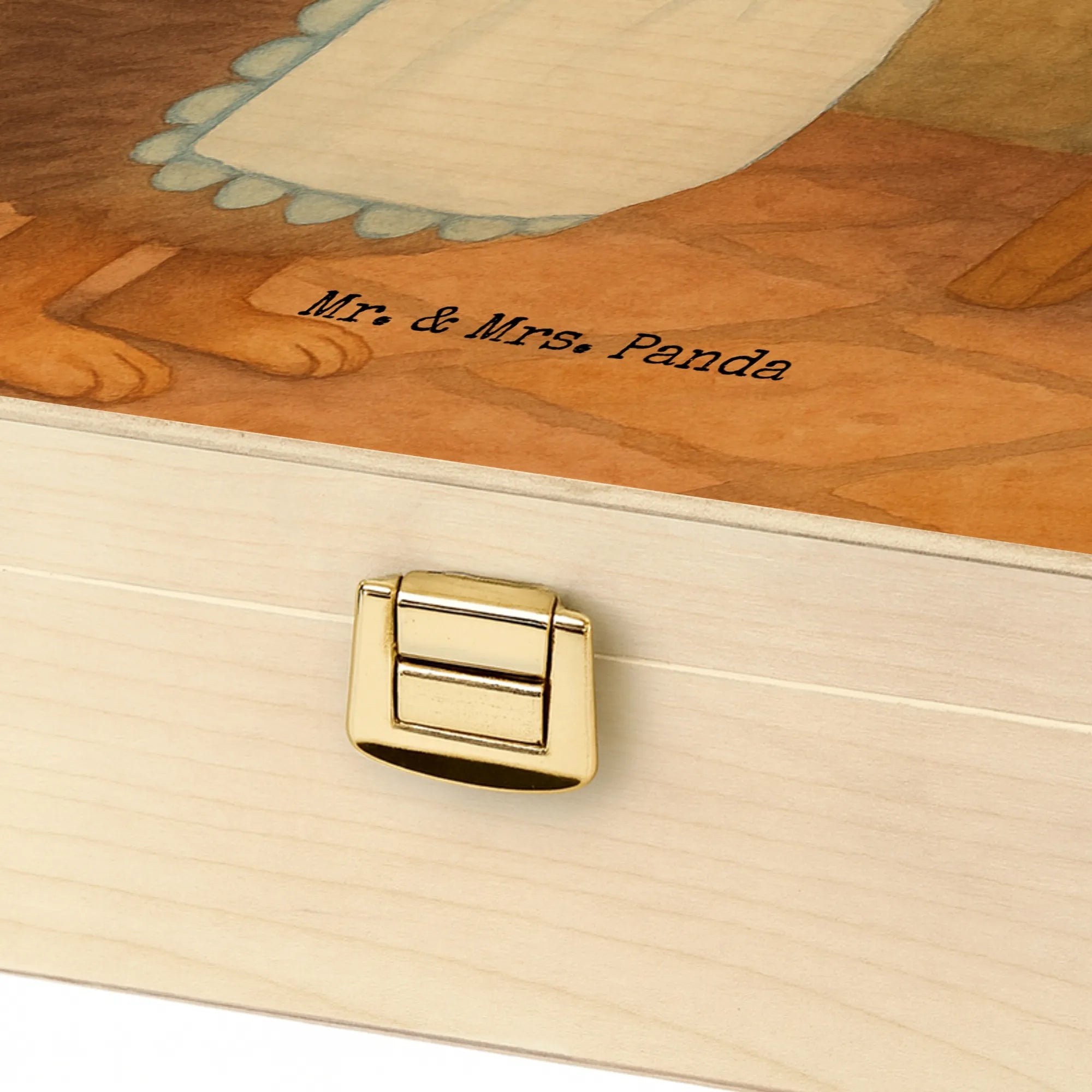 Unsere Holz-Teekiste von Mr. & Mrs. Panda kombiniert Funktionalität mit zauberhaftem Design. Bedruckt mit den wunderschönen Motiven von Mr. & Mrs. Panda verleiht sie deinem Zuhause eine persönliche Note, auch wenn sie nicht personalisierbar ist. Der Druck ist fasertief und wunderschön, gefertigt mit umweltfreundlicher & nachhaltiger Tinte. Dekorative Layouts und Vorlagen machen die Box zu einem tollen Blickfang. Material: 7 mm Birke-Schichtholz an den Kanten gezinkt, Farbe: Natur – robust und natürlich. Die Teebox hat einen sicheren Verschluss und Einschlag-Scharnieren (nicht abschließbar). Maße: 215 mm x 75 mm x 155 mm, Gewicht: 450 g – handlich und stabil zugleich. Innen ist die Box in sechs Fächer unterteilt, ideal als aufbewahrungsbox für teebeutel, tee kiste oder holzteekiste zur übersichtlichen Lagerung verschiedener Sorten. Ob du sie als box für tee, tee organizer box oder vorratsbox tee nutzt – diese Kiste bringt Stil und Ordnung. Ein schönes Geschenk für Freunde oder eine hübsche Ergänzung für dein eigenes Regal.