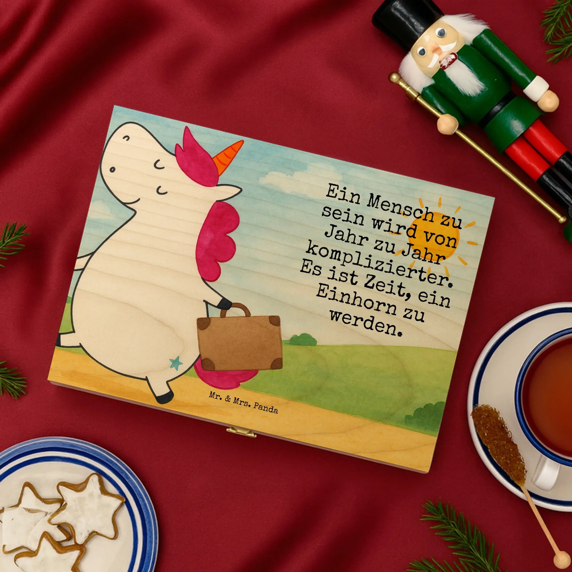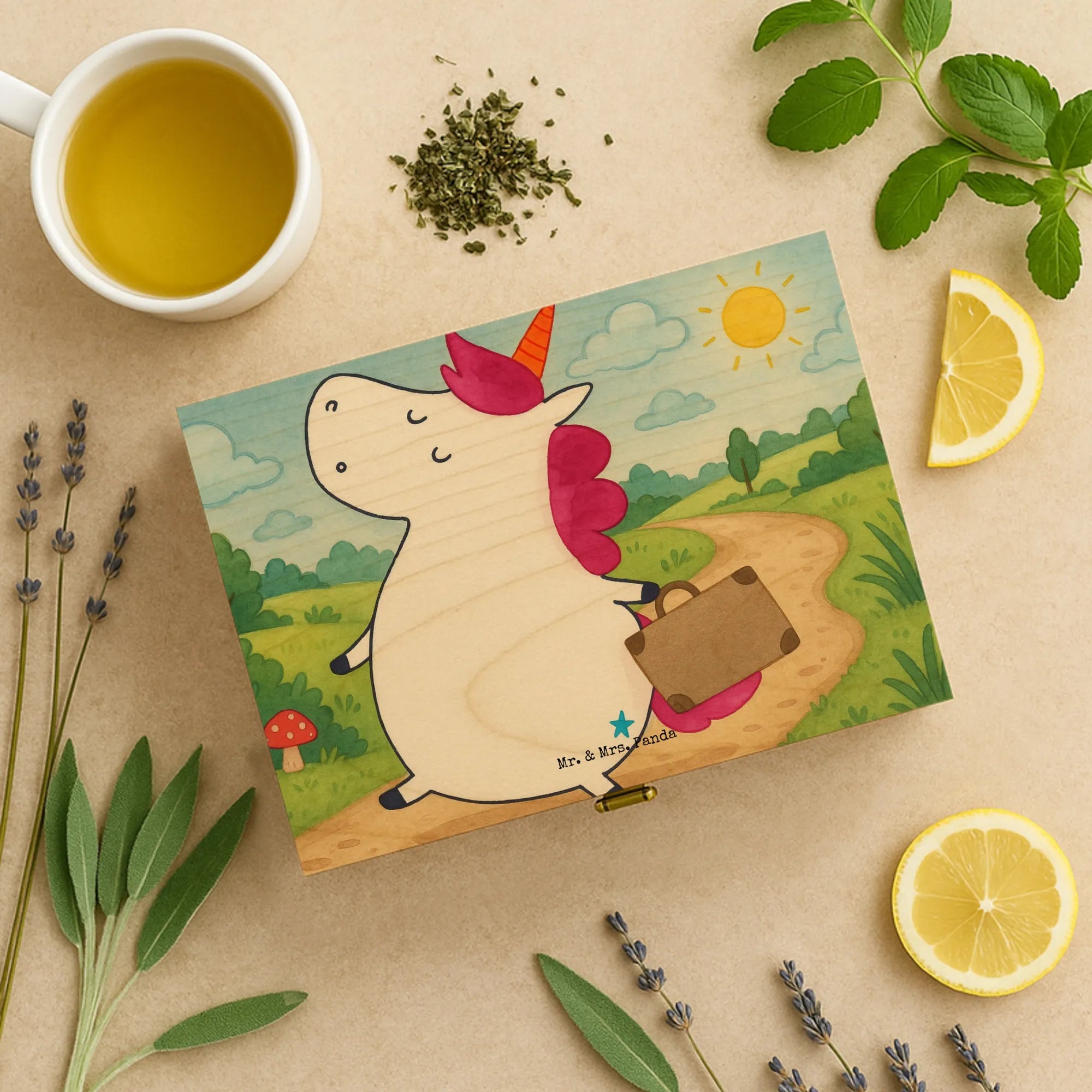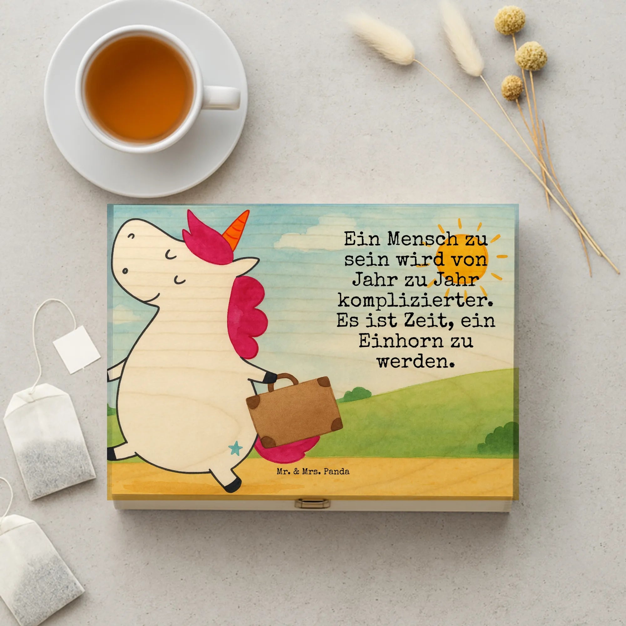 teebeutel aufbewahrungsbox Einhorn Koffer Design - mit Spruch