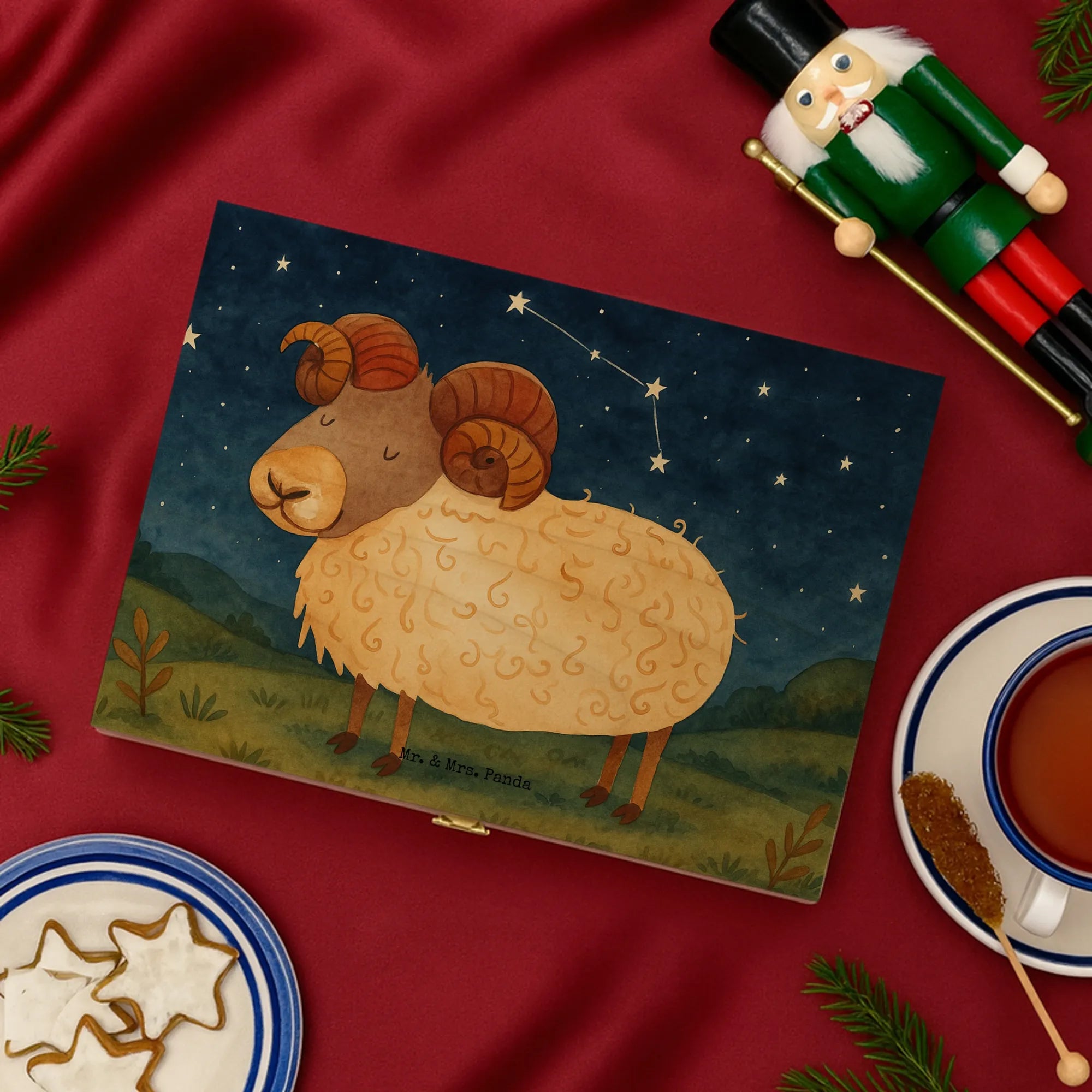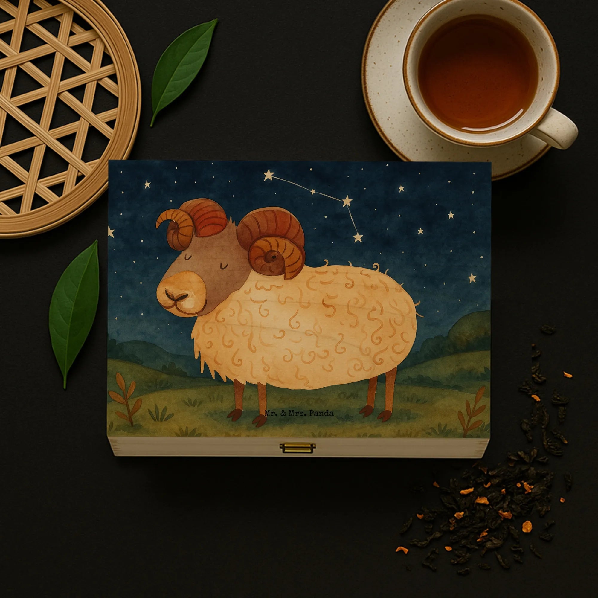 Teebox Holz Sternzeichen Widder Design - mit Spruch
