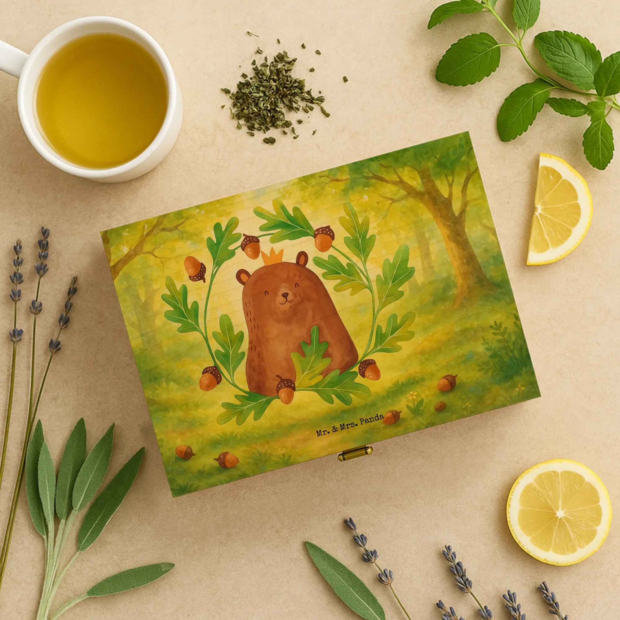 Hol dir Ordnung und süße Motive in deine Küche mit unserer Teekiste von Mr. & Mrs. Panda. Diese Teedose ist bedruckt mit den wunderschönen Motiven von Mr. & Mrs. Panda und bringt Stimmung in jede Teestunde. Nicht personalisierbar, aber mit fasertiefem, hochwertigem Druck, der farbintensiv und langlebig ist. Wir verwenden umweltfreundliche & nachhaltige Tinte für ein gutes Gewissen beim Kauf. Die dekorativen Layouts und Vorlagen sorgen dafür, dass die Box sofort ins Auge fällt. Hergestellt aus robustem Material: 7 mm Birke-Schichtholz an den Kanten gezinkt, Farbe: Natur. Die Box verfügt über einen sicheren Verschluss und Einschlag-Scharnieren (nicht abschließbar). Maße: 215 mm x 75 mm x 155 mm und Gewicht: 450 g – leicht genug zum Hineinreichen, stabil genug zum Aufbewahren. Innen ist die Teebox in sechs Fächer unterteilt, ideal für Tee in Beuteln, Teebeutel Organizer oder als teebehälter für verschiedene Sorten. Ob auf der Küchenzeile oder als Geschenk – diese Teeaufbewahrung ist praktisch und dekorativ. Stichworte wie teedose, teebehälter und teeaufbewahrung beschreiben genau, was du bekommst.