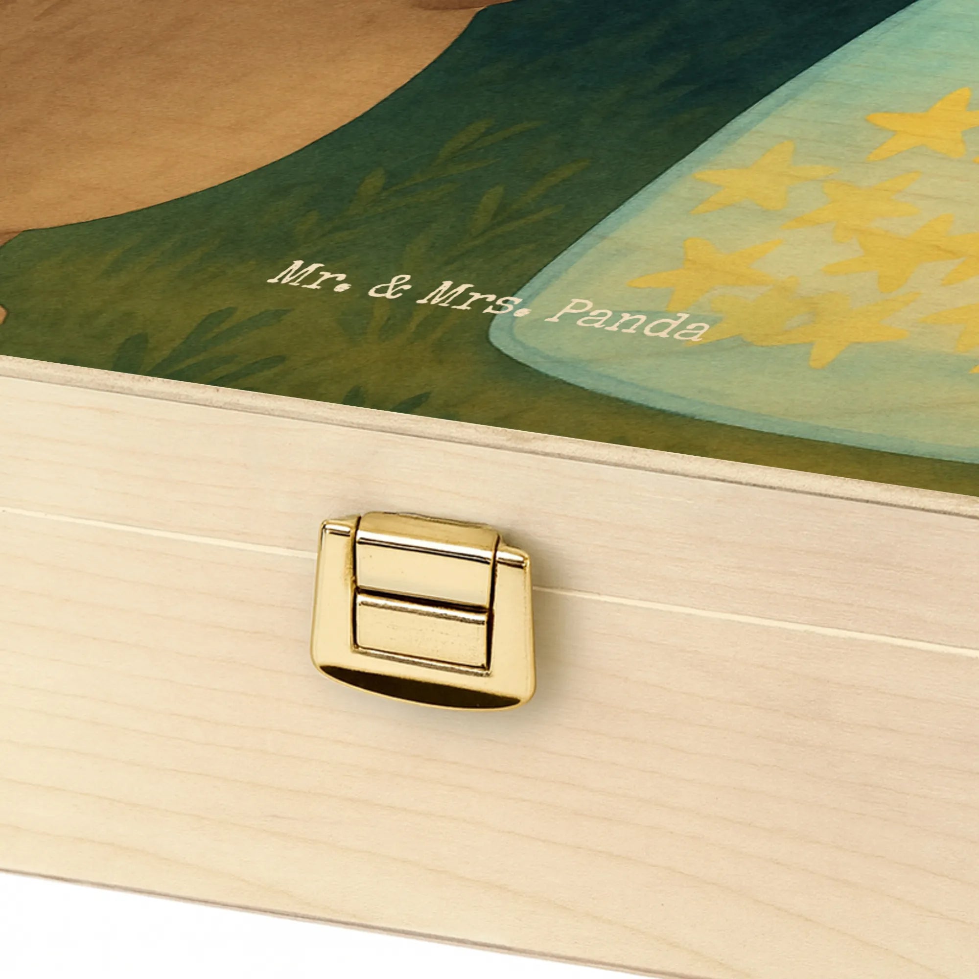 Diese Teekiste von Mr. & Mrs. Panda ist ein kleines Organisationstalent mit großem Charme. Bedruckt mit den wunderschönen Motiven von Mr. & Mrs. Panda verleiht sie deiner Küche oder dem Wohnbereich eine verspielte Note. Die Box ist nicht personalisierbar, glänzt aber mit fasertiefem wunderschönen Druck und wird mit umweltfreundlicher & nachhaltiger Tinte gedruckt. Dekorative Layouts und Vorlagen runden das Design ab. Gefertigt aus stabilem Material: 7 mm Birke-Schichtholz an den Kanten gezinkt, Farbe: Natur. Ausgestattet mit Verschluss und Einschlag-Scharnieren (nicht abschließbar), schützt die Box deinen Tee zuverlässig. Maße: 215 mm x 75 mm x 155 mm, Gewicht: 450 g – ideal für Regal oder Theke. Innen findest du sechs Fächer, perfekt geeignet als teebeutelbox, teekasten oder teebeutel organizer, damit jede Teesorte ihr eigenes Fach hat. Ob du Schwarztee, Kräuter- oder Früchtetee sammelst – diese Teeaufbewahrungsbox bringt Struktur in dein Sortiment. Als Geschenk oder als persönlicher Begleiter ist diese Box ein echter Hingucker und nützlicher Alltagshelfer.