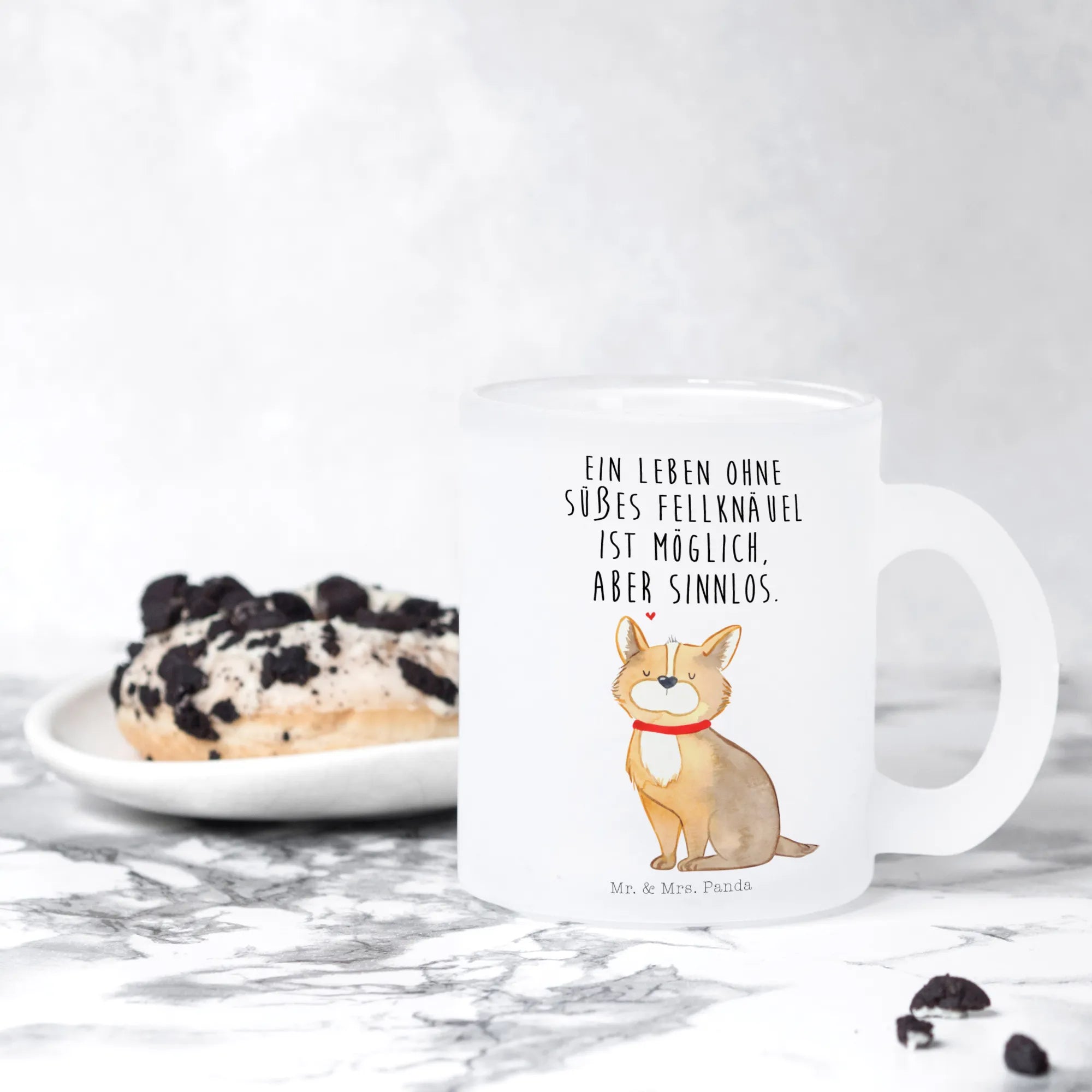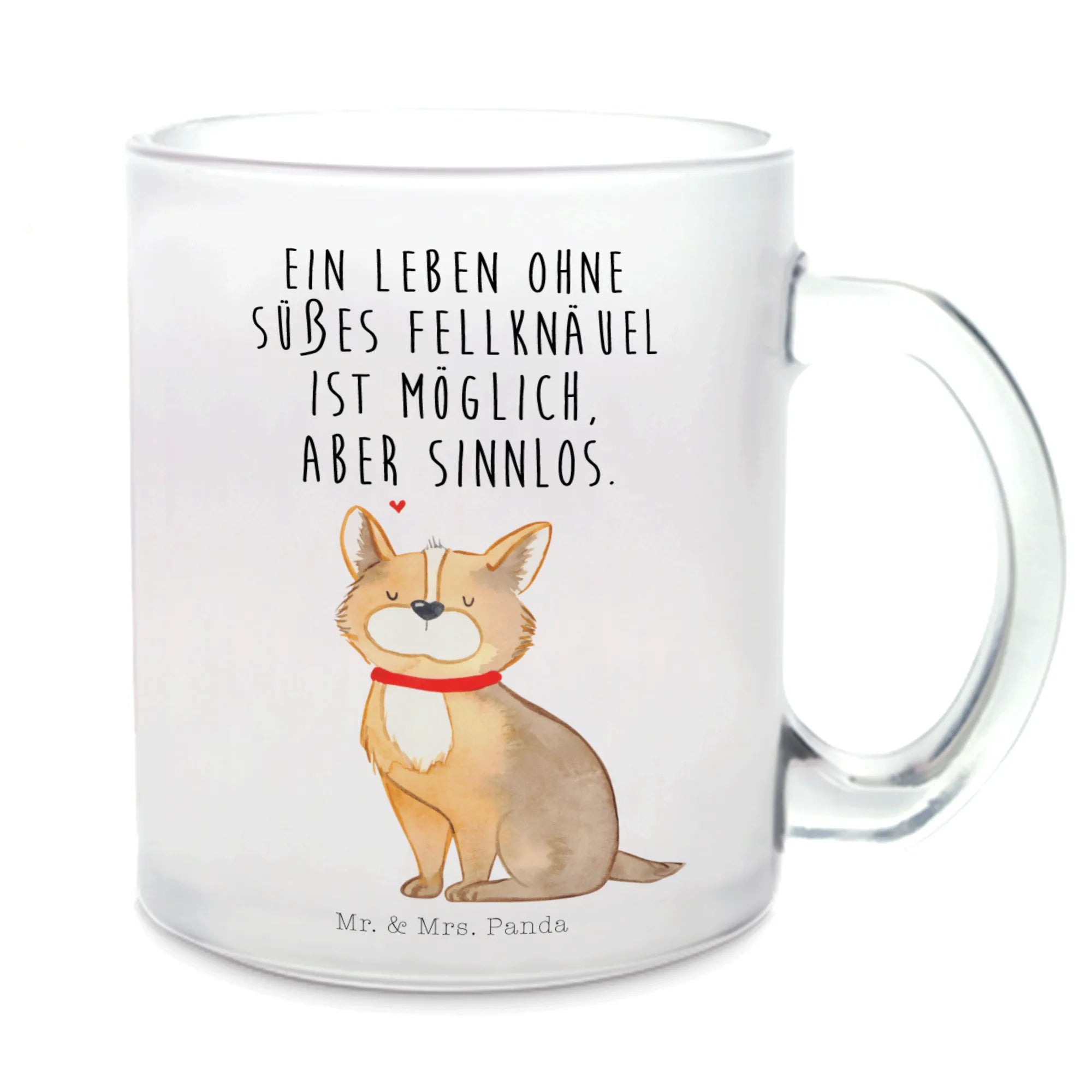 Die Teetasse "Hundeglück" aus der Hunde Kollektion von Mr. & Mrs. Panda ist das perfekte Geschenk für alle Hundeliebhaber und Hundebesitzer. Mit ihrem niedlichen Motiv eines fröhlichen Hundes mit rotem Halsband bringt sie jeden Teeliebhaber zum Schmunzeln. Diese exklusive Teetasse aus robustem Premiumglas ist besonders vielseitig und eignet sich für warmen Tee, duftenden Kaffee oder sogar ein Glas Glühwein.