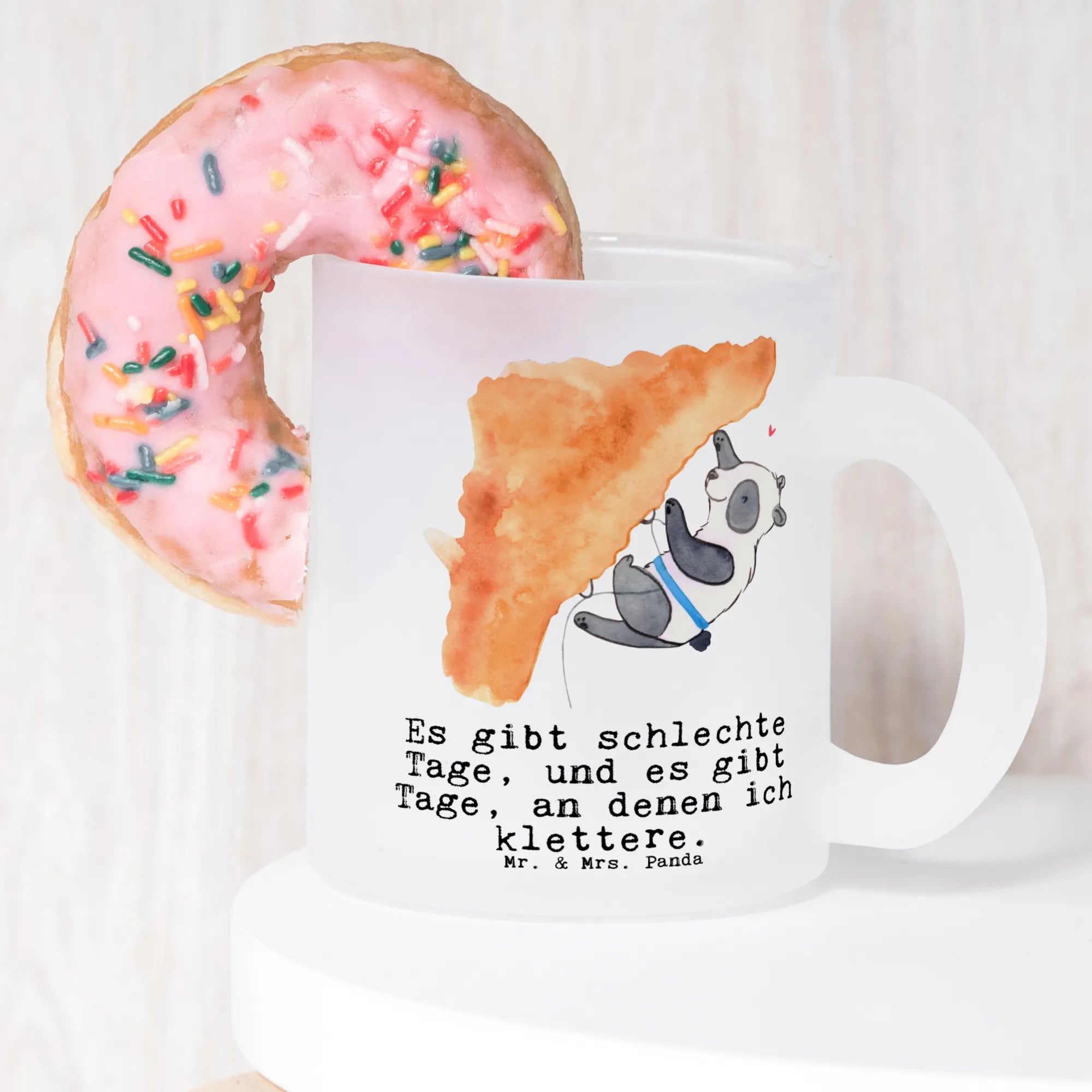 Ob als ideales Geschenk zum Geburtstag, als Dankeschön für den besten Kletterpartner oder einfach, um sich selbst eine Freude zu machen – die Teetasse 'Panda Klettern Tage' ist der perfekte Wegbegleiter für sportliche Abenteuer und entspannte Teestunden nach einem langen Tag in der Kletterhalle.