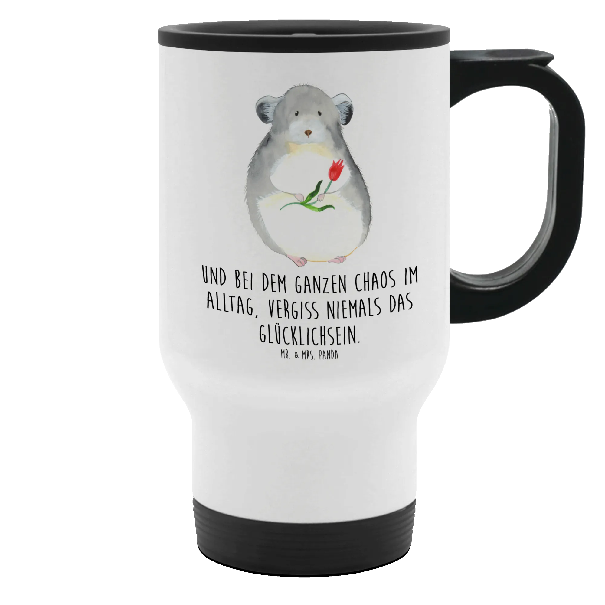 Entdecke den perfekten Begleiter für deinen Alltag – den einzigartigen Thermobecher "Chinchilla mit Blume" aus der Small World Kollektion von Mr. & Mrs. Panda! Wenn du gerne heißen Tee oder Kaffee unterwegs genießt, dann ist dieser bezaubernde Edelstahlbecher genau das Richtige für dich. Die Füllmenge von 390 ml macht ihn zum idealen Reisebecher für Kaffee, Tee oder andere Heißgetränke.