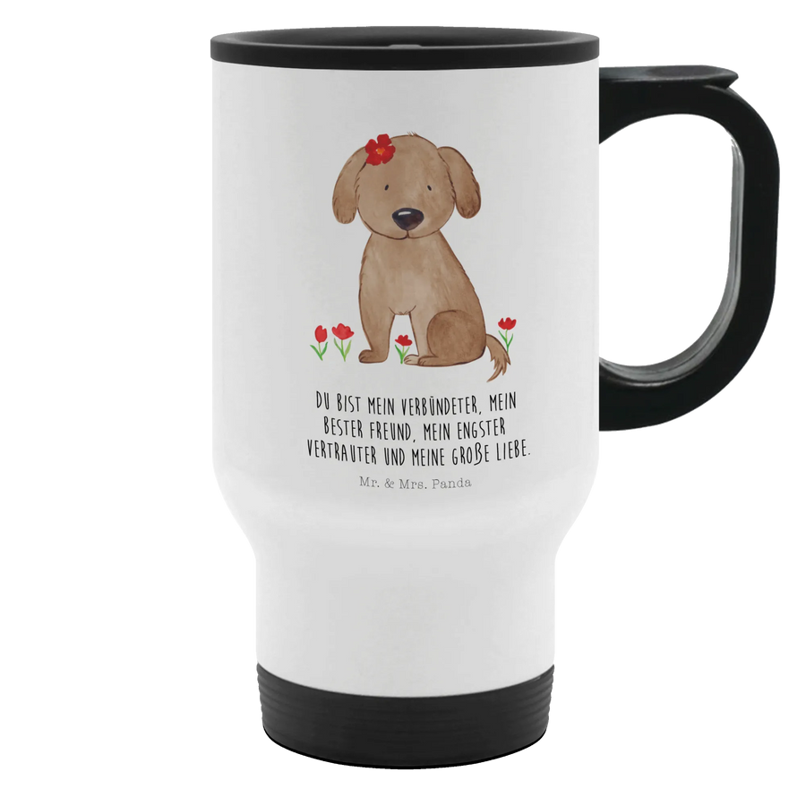 Die niedliche Illustration der Hundedame mit einer charmanten Blume auf dem Kopf ist ein wahrer Hingucker und bringt ein Lächeln auf Dein Gesicht, wann immer Du einen Schluck nimmst! Dieser Reisebecher ist nicht nur für Dich gedacht, sondern auch als Geschenk geeignet. Perfekt für Weihnachtsgeschenke, Geburtstage oder einfach nur, um jemandem zu zeigen, dass Du an ihn denkst. Stelle Dir vor, wie sich Dein bester Freund über diesen Kaffeebecher freut, während er oder sie mit dem Hund draußen ist!