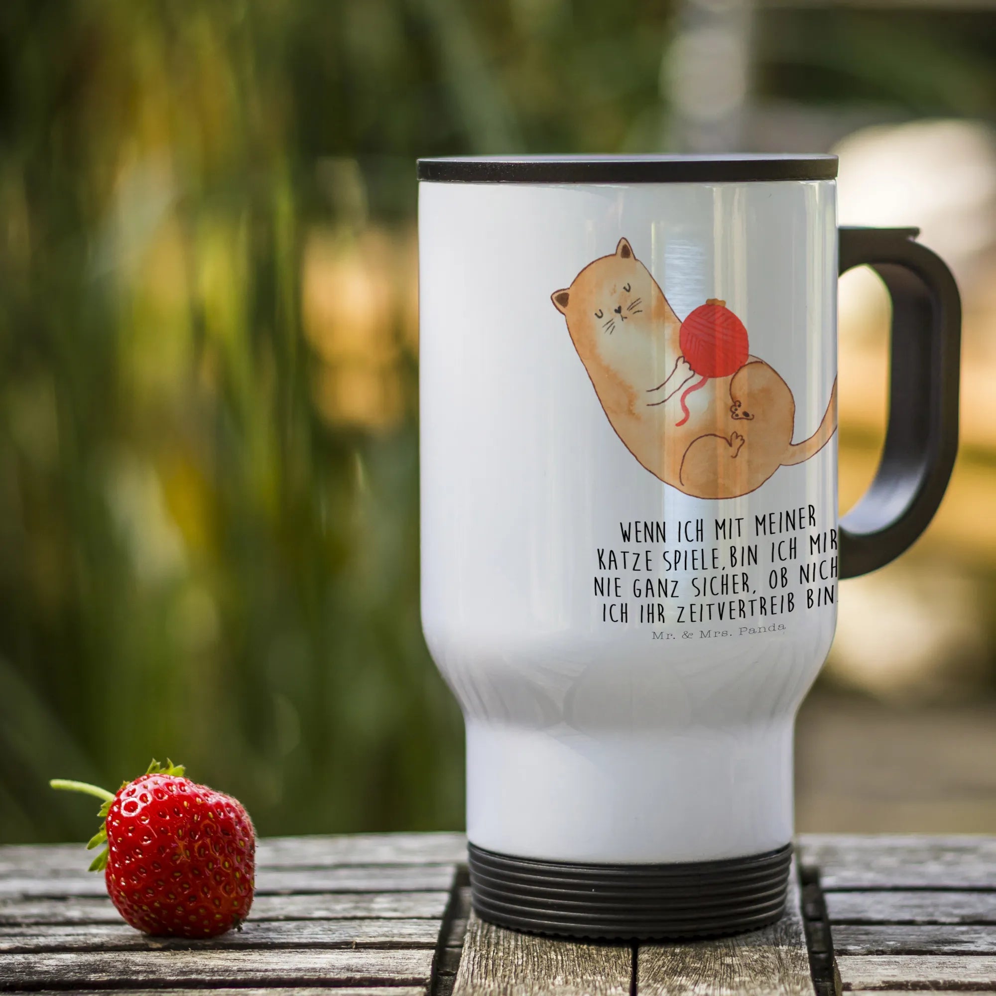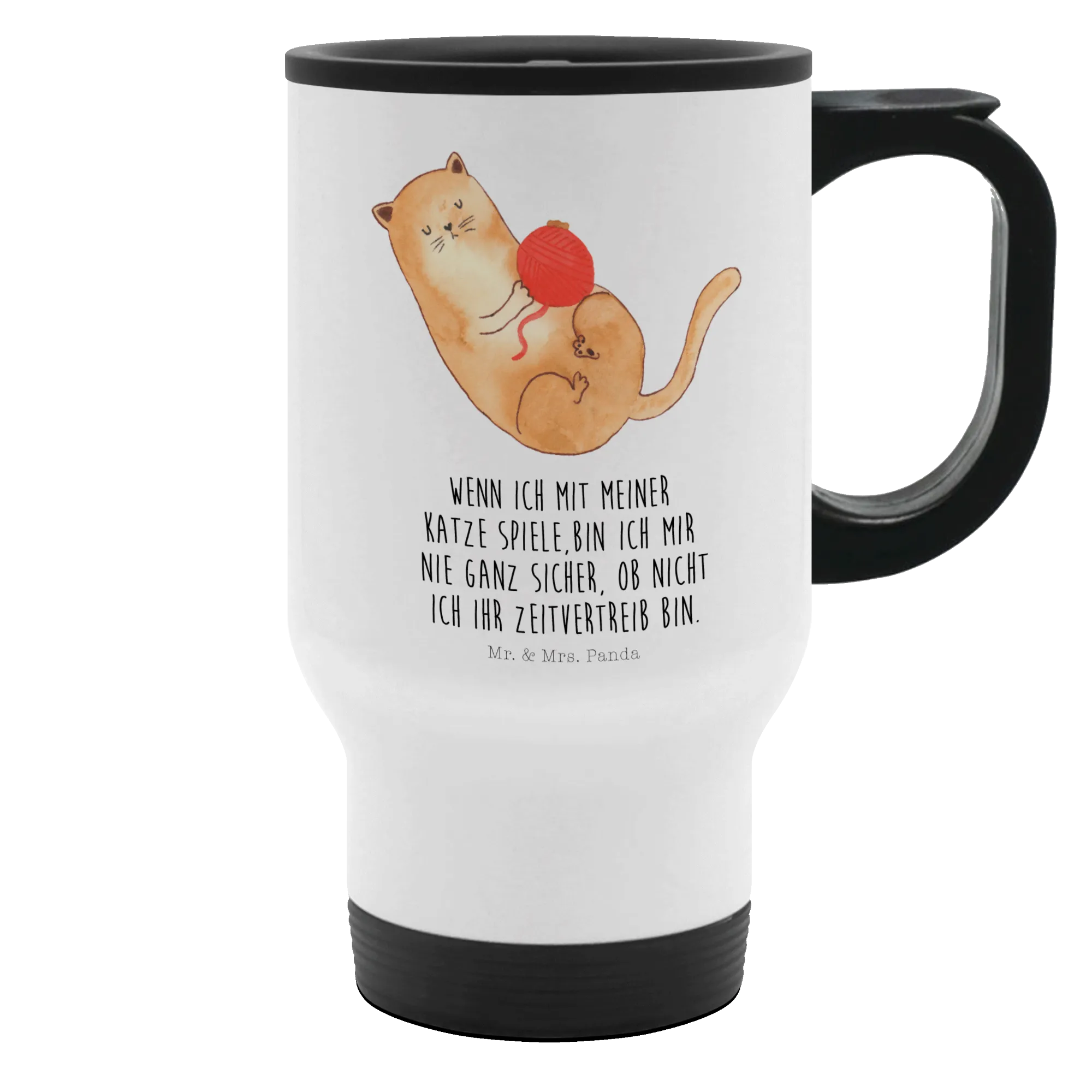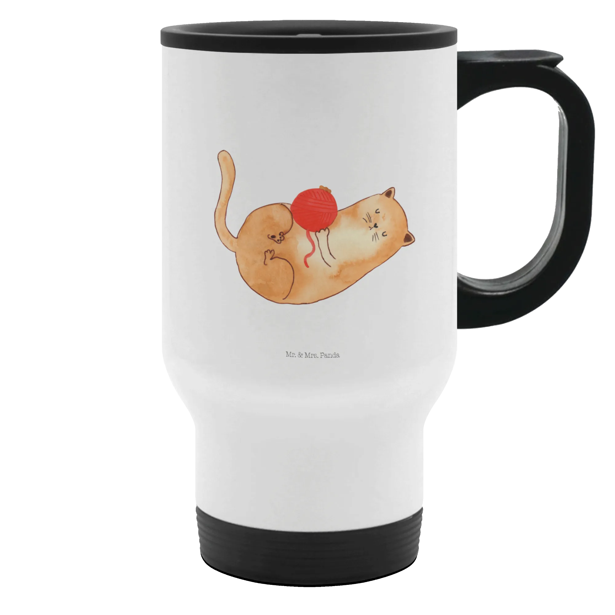 Entdecke den perfekten Thermobecher mit dem liebevollen Katzenmotiv Wollknäul aus der Katzen-Kollektion von Mr. & Mrs. Panda!