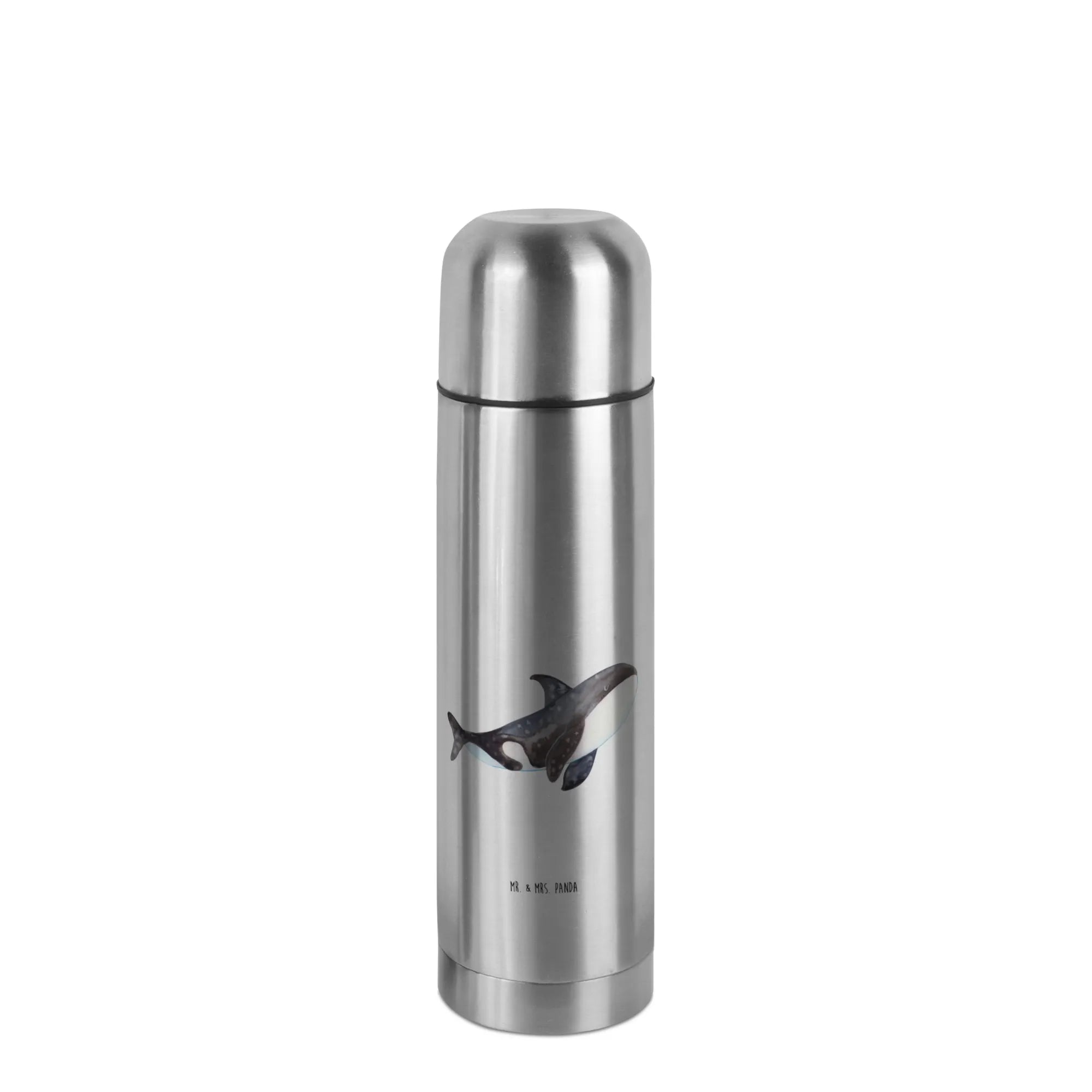 Entdecke die beeindruckende Thermoskanne Orca aus der Meerestiere Kollektion von Mr. & Mrs. Panda! Mit einem charmanten Aquarell-Motiv eines Orcas, der in sanften Grau- und Blautönen schimmert, ist diese Thermoskanne die perfekte Mischung aus Funktionalität und stilvollem Design.