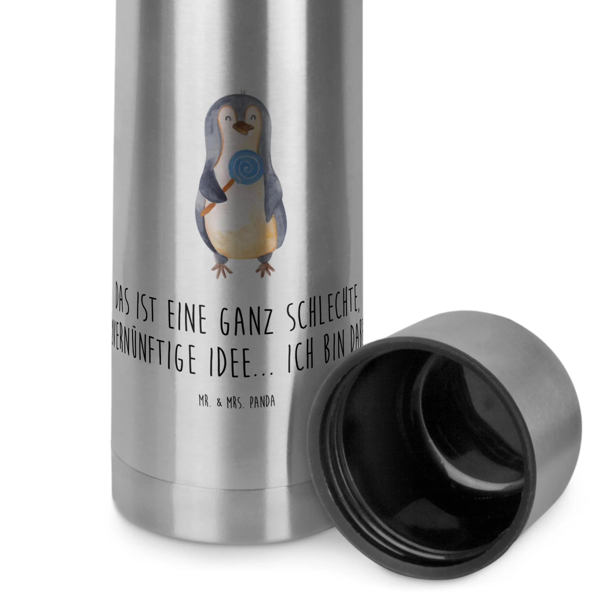 Entdecke die zauberhafte Thermoskanne mit dem süßen Pinguin-Lolli-Motiv aus der Pinguin-Kollektion von Mr. & Mrs. Panda! Diese Thermoskanne ist nicht nur ein echter Blickfang, sondern auch ein praktisches Accessoire für deinen Alltag.