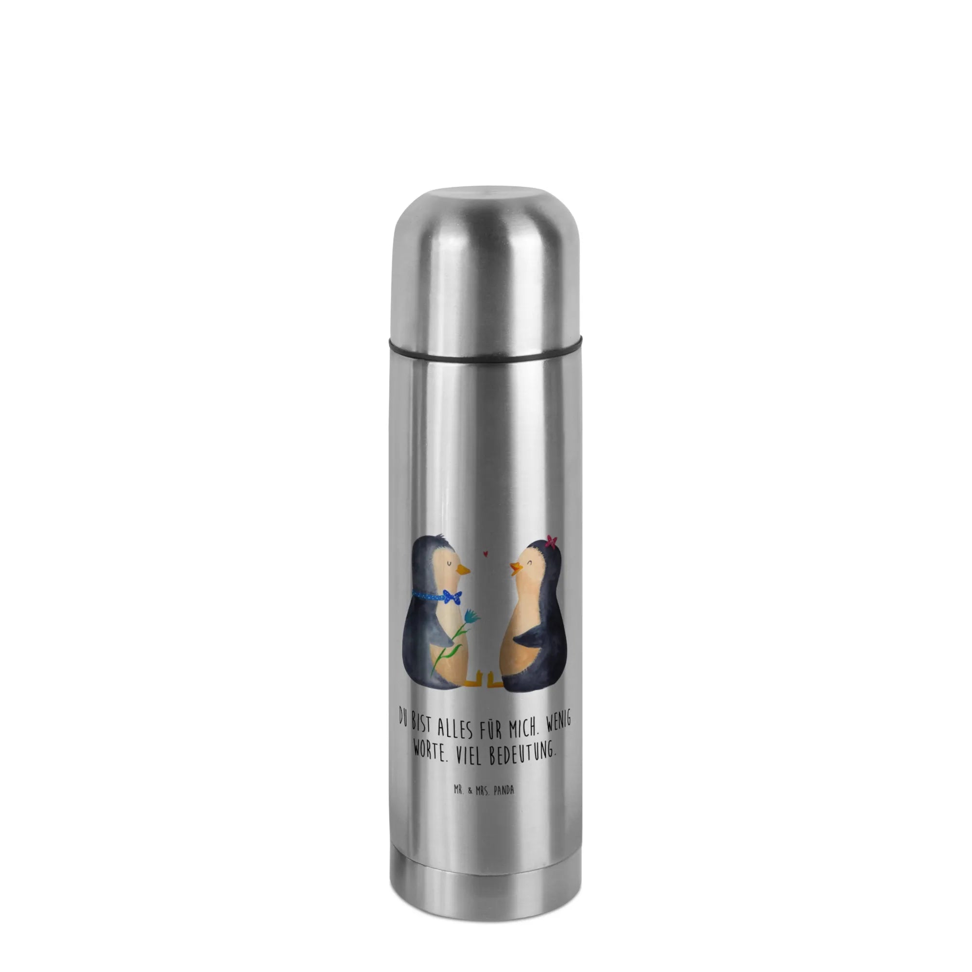 Die wunderschöne Thermoskanne mit dem süßen Motiv des Pinguin Pärchens von Mr. & Mrs. Panda ist der perfekte Begleiter für all deine Abenteuer! Sie vereint Funktionalität und ein bezauberndes Design.