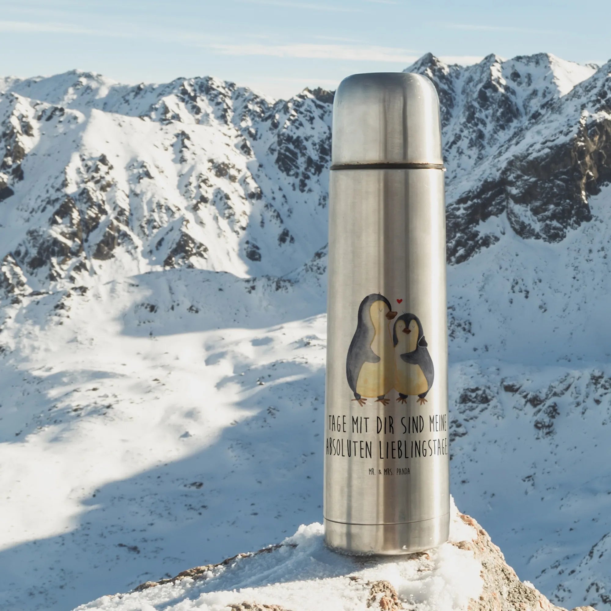 Diese wunderschöne Thermoskanne mit dem Motiv eines umarmenden Pinguins aus der Pinguin-Kollektion von Mr. & Mrs. Panda ist der perfekte Begleiter für all eure gemeinsamen Abenteuer. Ob beim nächsten Date, beim Picknick im Park oder einfach nur in der Kaffeepause im Büro – die liebevoll gestaltete Kanne wird ein steter Reminder an die besonderen Momente in eurer Beziehung sein.