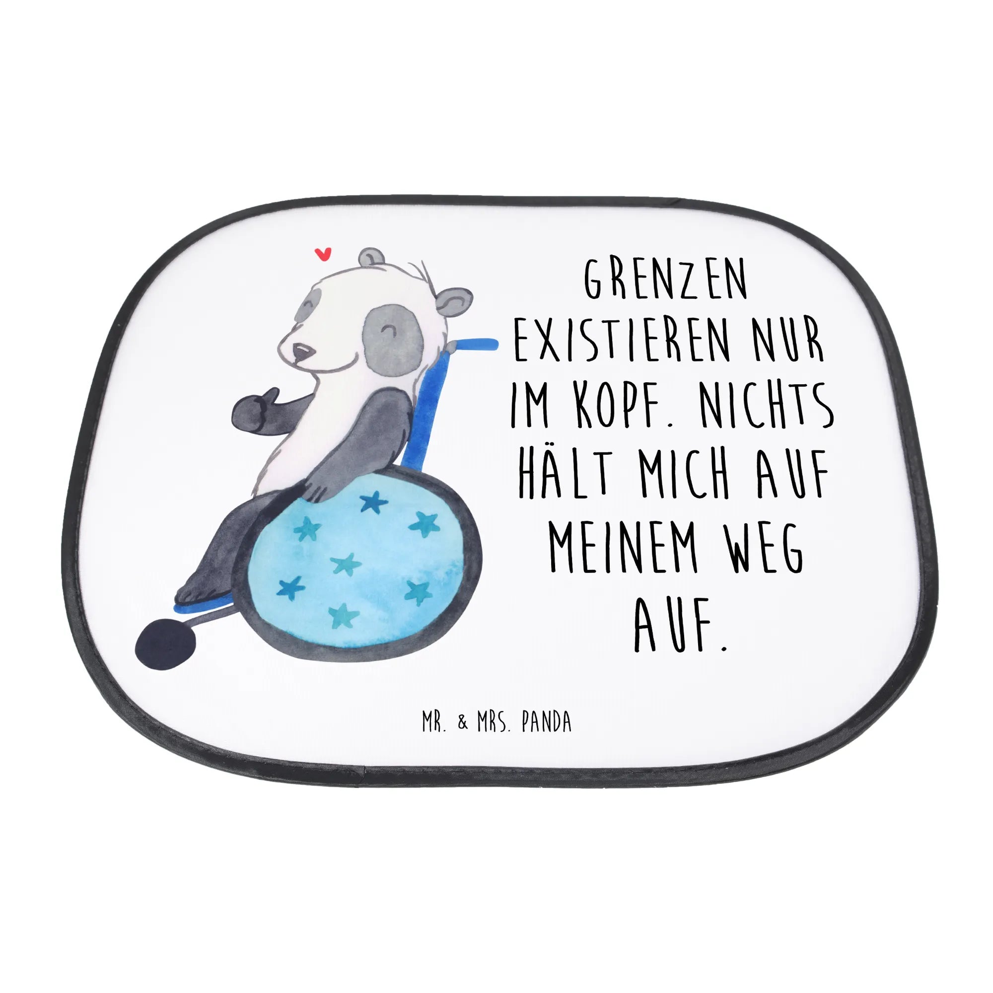 Entdecke ein zauberhaftes Motiv, das nicht nur die Augen zum Leuchten bringt, sondern auch das Herz berührt: Ein zuversichtlicher Panda in einem Rollstuhl, der mit einem Lächeln und einem Daumen nach oben die Welt begrüßt. Der charakteristische Spruch 'Grenzen existieren nur im Kopf. Nichts hält mich auf meinem Weg auf' ist eine Hommage an all die starken Seelen, die täglich beweisen, dass wahren Herausforderungen innerlich überwunden werden können. Durch diesen inspirierenden Panda möchte Mr. & Mrs. Panda zeigen, dass es möglich ist, das Leben mit Freude und Zuversicht anzunehmen, unabhängig von den Umständen. Dieses Motiv ist eine Erinnerung daran, dass jeder von uns fähig ist, seine Träume zu leben, wenn wir die 'Grenzen', die wir uns selbst setzen, hinter uns lassen. Eine Einladung, gemeinsam für eine Welt der Akzeptanz und Liebe zu kämpfen, wo jeder Mensch geschätzt wird.