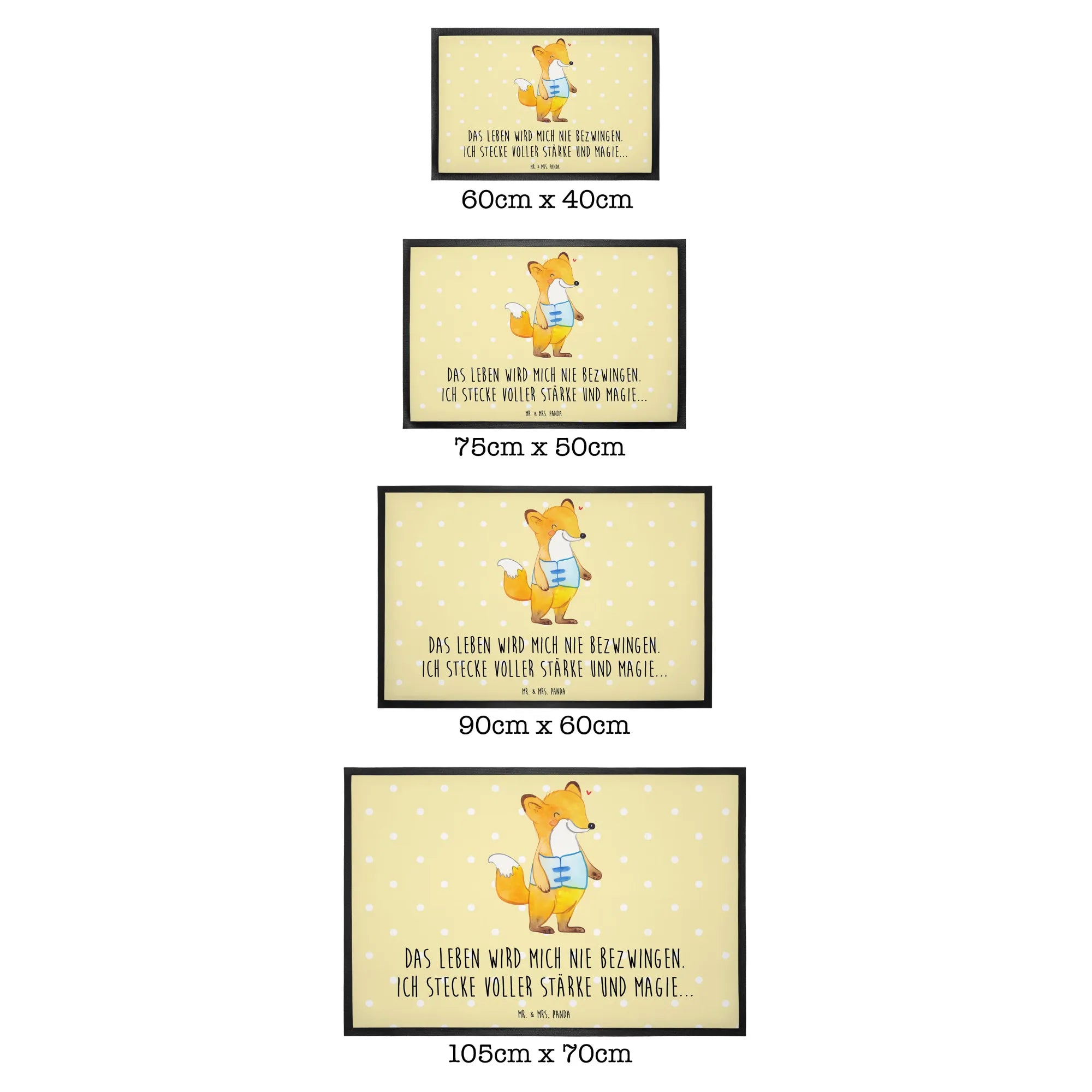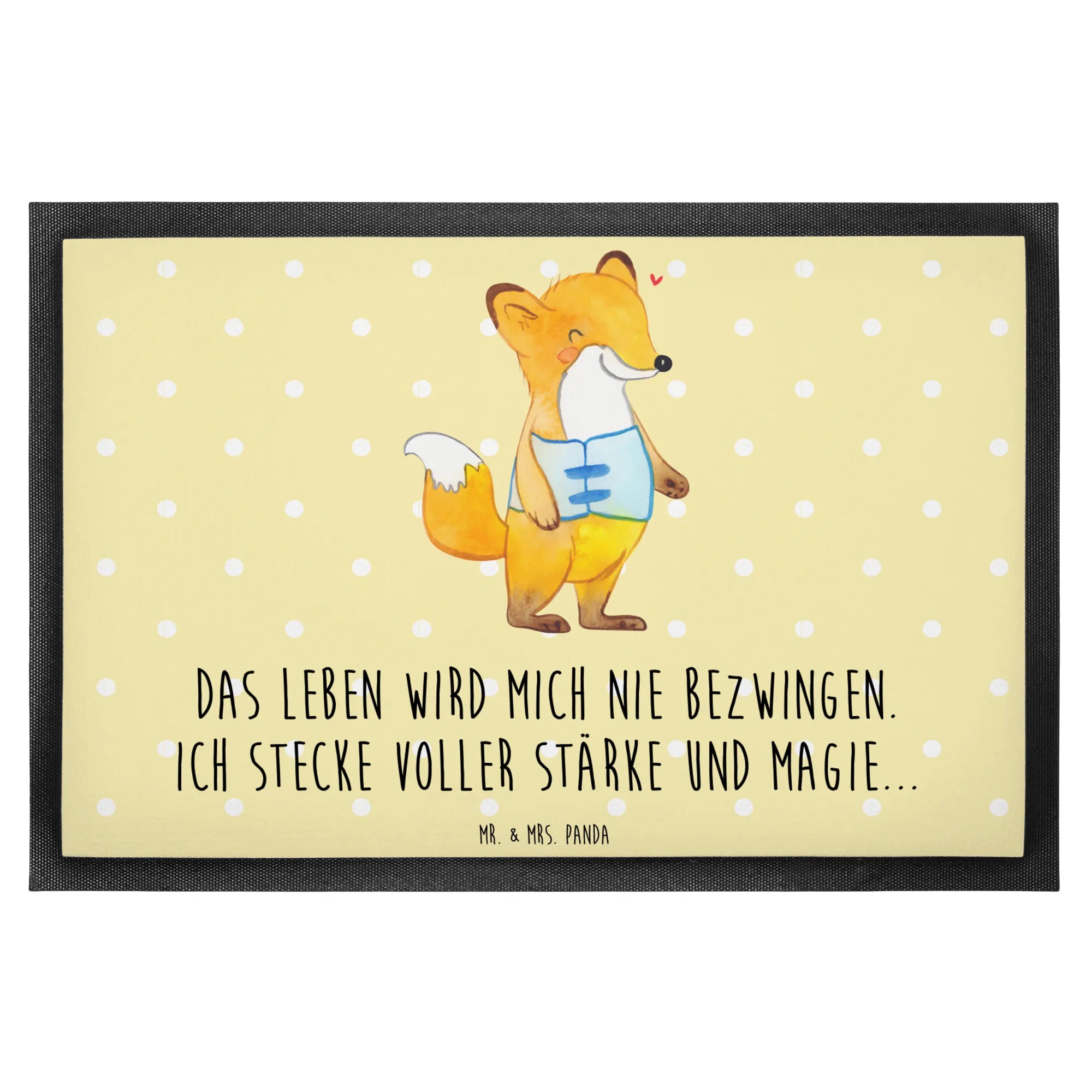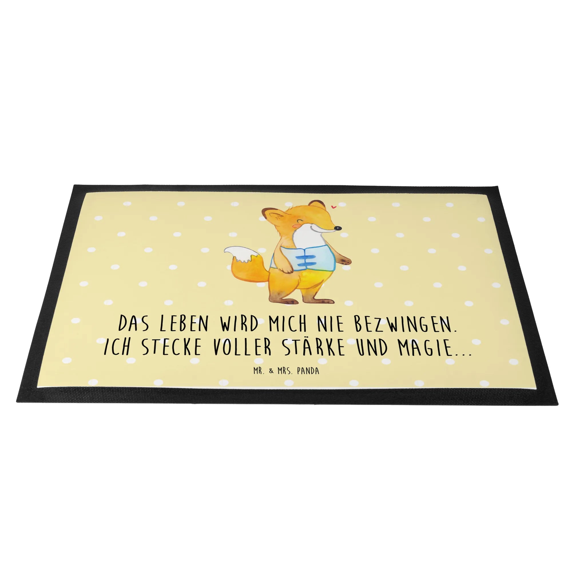 In einem zarten Pastellgelb entworfen, bringt diese Matte mit dem schönen Fuchs-Motiv ein warmes Lächeln zu jeder Haustür. Das Slogan 'Das Leben wird mich nie bezwingen. Ich stecke voller Stärke und Magie...' gibt Mut und zeigt, dass es immer einen Weg gibt, das Leben zu meistern, egal welche Hürden einem in den Weg gelegt werden.