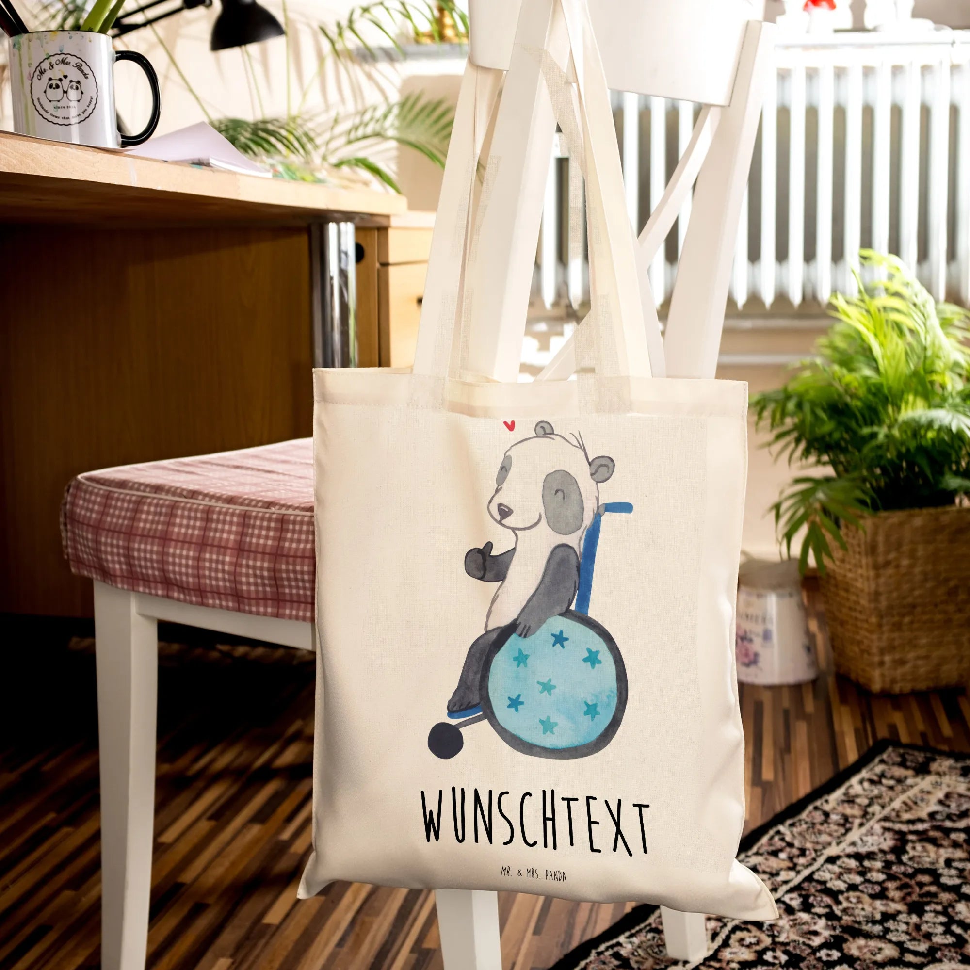 Unsere personalisierte Tragetasche mit dem süßen Motiv "Panda Rollstuhl" aus der Kollektion "Tiere mit Superkräften" ist der perfekte Begleiter für alle, die ihren Alltag mit einem Handicap meistern. Diese Tasche steht für Inklusion und Wertschätzung der besonderen Fähigkeiten, die Menschen mit Handicap mitbringen.