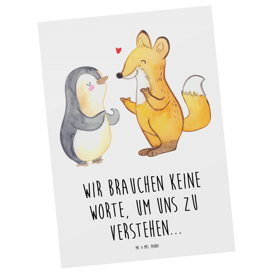 Postkarte Fuchs & Pinguin gehörlos - Weiß