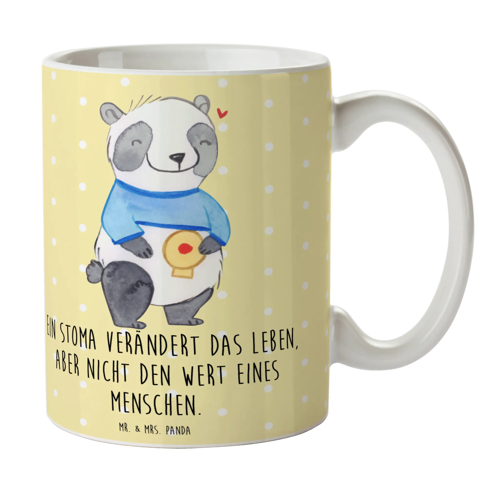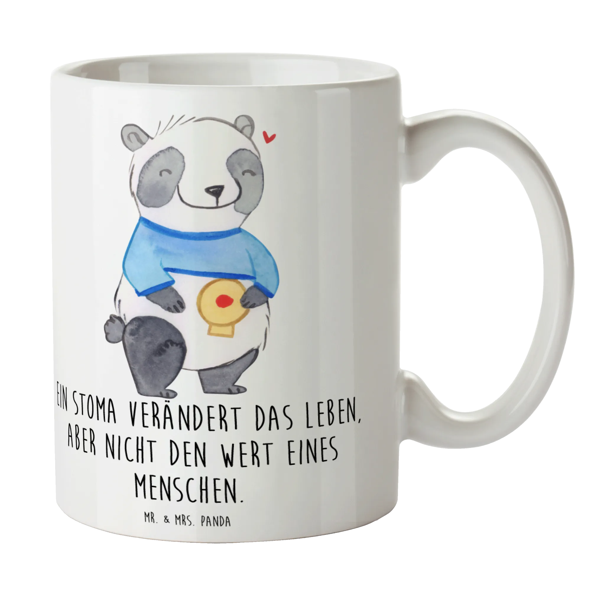 Der niedliche Panda, der seinen Stomabeutel so brav trägt, inspiriert uns, die positiven Seiten des Lebens trotz Einschränkungen zu sehen. Mit dem inspirierenden Slogan "Ein Stoma verändert das Leben, aber nicht den Wert eines Menschen" ist diese Tasse ein wunderbares Geschenk für Freunde, Familie oder für dich selbst.