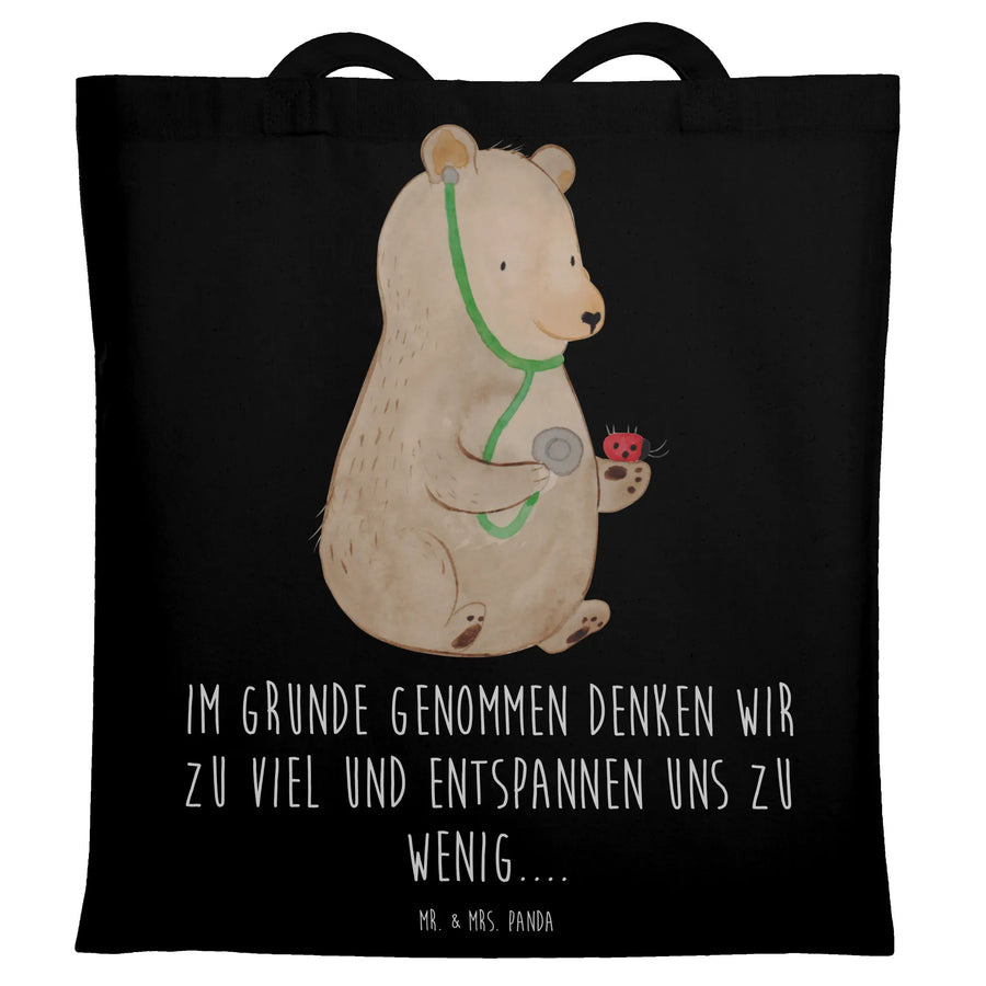 Wenn du auf der Suche nach einem besonderen Geschenk für Ärzte, Medizinstudenten oder einfach Bären-Fans bist, dann ist diese Tasche genau das Richtige. Das Motiv ist liebevoll von Mrs. Panda handgezeichnet, und die besondere Botschaft „Im Grunde genommen denken wir zu viel und entspannen uns zu wenig....“ regt zum Nachdenken an und erinnert uns daran, das Leben leichter zu nehmen.