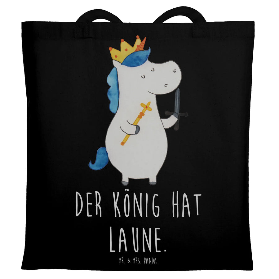 Tragetasche Einhorn König mit Schwert - mit Spruch - Schwarz