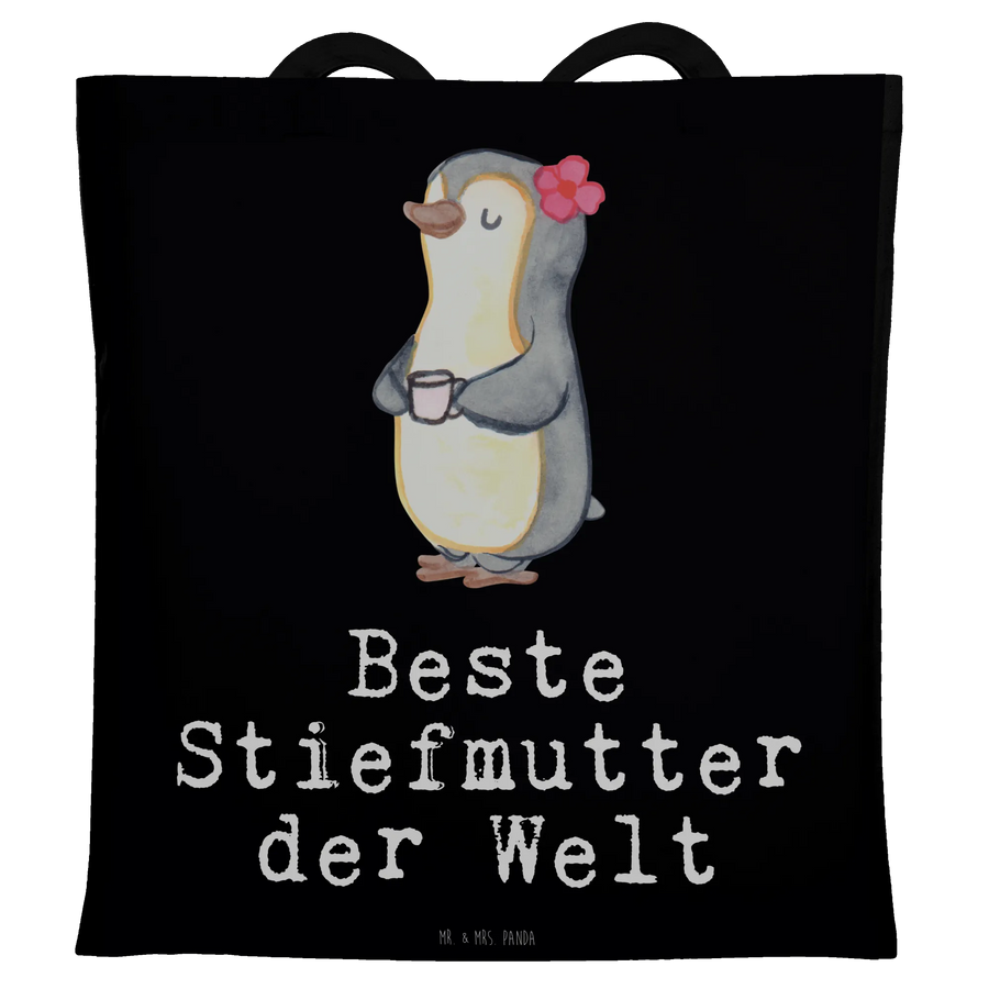 Tragetasche Pinguin Beste Stiefmutter der Welt - Schwarz