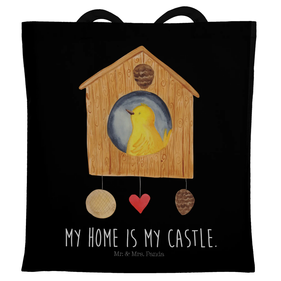 Tragetasche Vogel Haus - mit Spruch - Schwarz