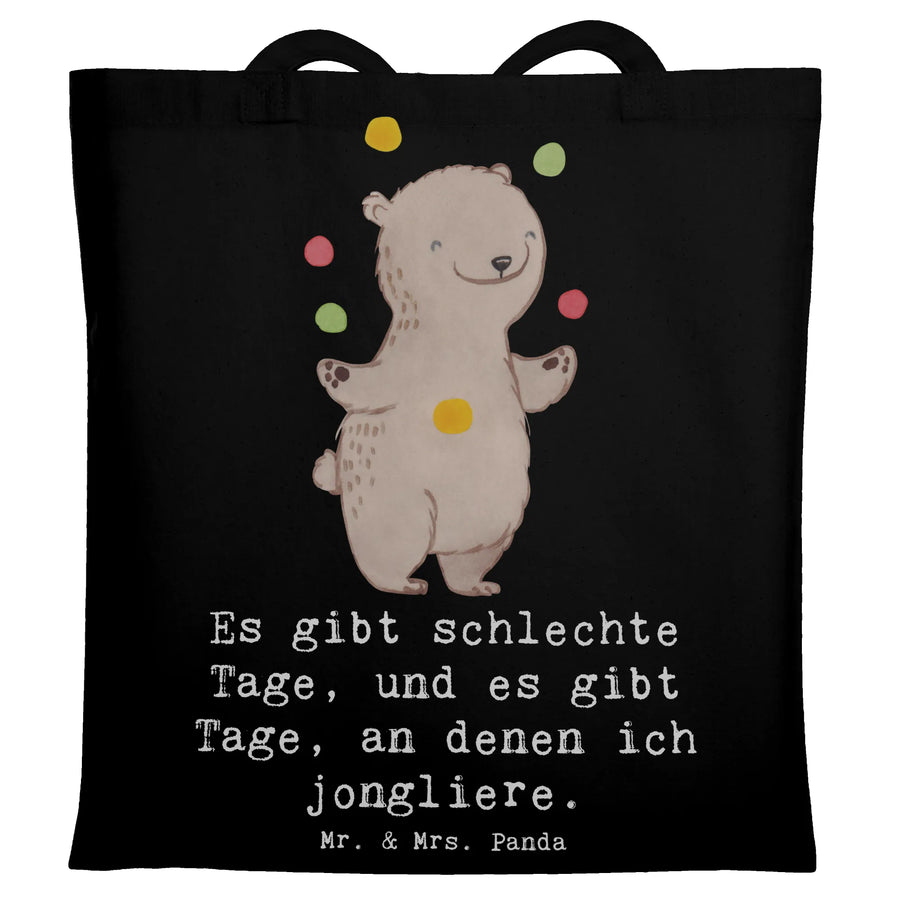 Einkaufstasche Bär Jonglieren - mit Spruch - Schwarz