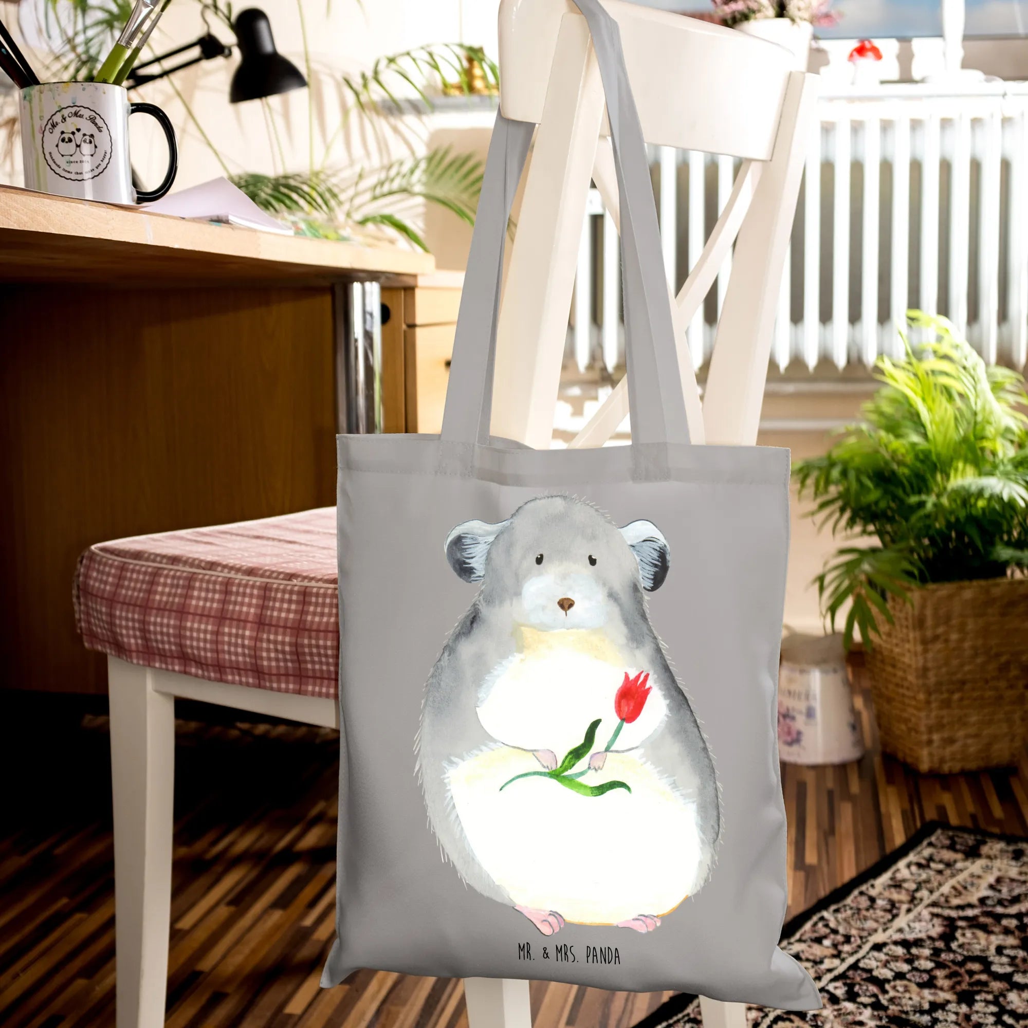 Entdecke die zauberhafte Tragetasche "Chinchilla mit Blume" aus der Small World Kollektion von Mr. & Mrs. Panda!