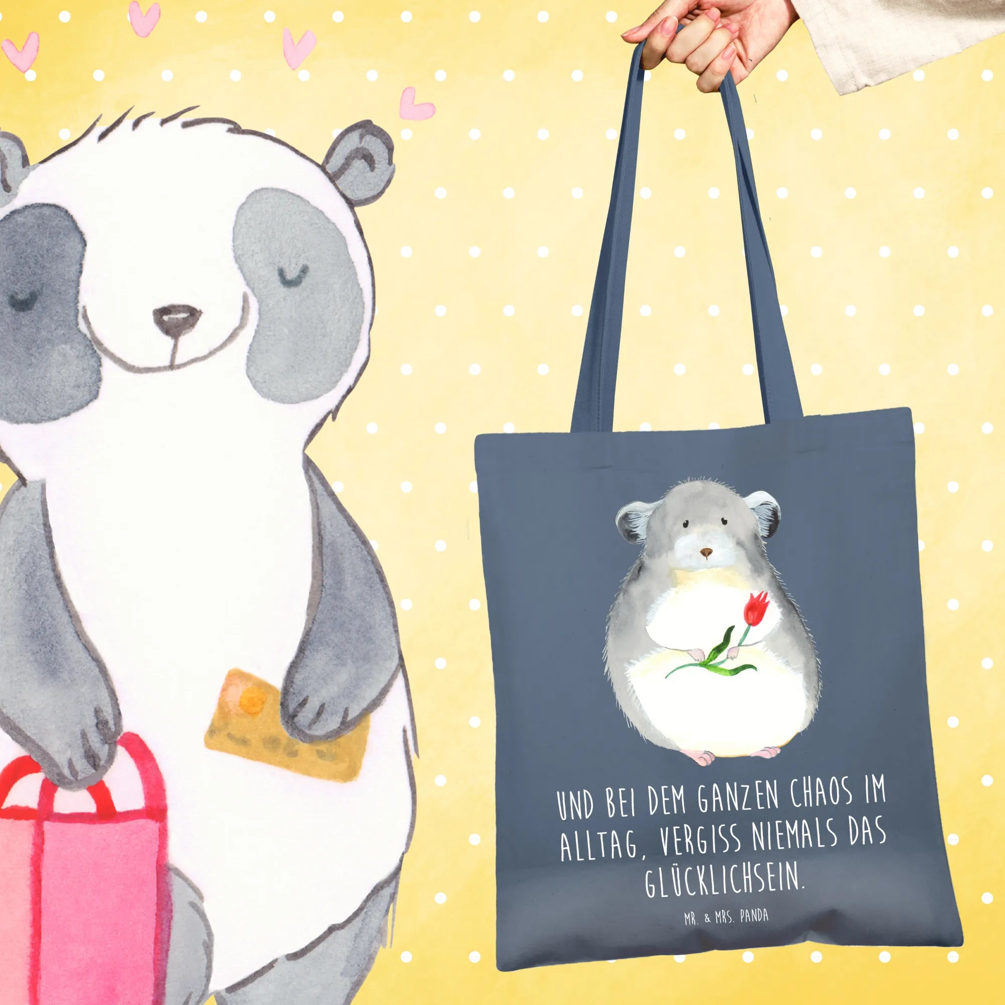 Die wunderschöne Tragetasche "Chinchilla mit Blume" aus der Small World Kollektion von Mr. & Mrs. Panda ist einfach der perfekte Begleiter für jeden Anlass! Ob beim Einkauf, im Büro oder am Strand – mit dieser stylischen und praktischen Tasche ziehst du alle Blicke auf dich. Das niedliche Chinchilla, das verwundert eine Blume in der Hand hält, zaubert nicht nur ein Lächeln auf dein Gesicht, sondern erinnert dich auch daran, bei all dem Chaos im Alltag das Glücklichsein niemals zu vergessen.