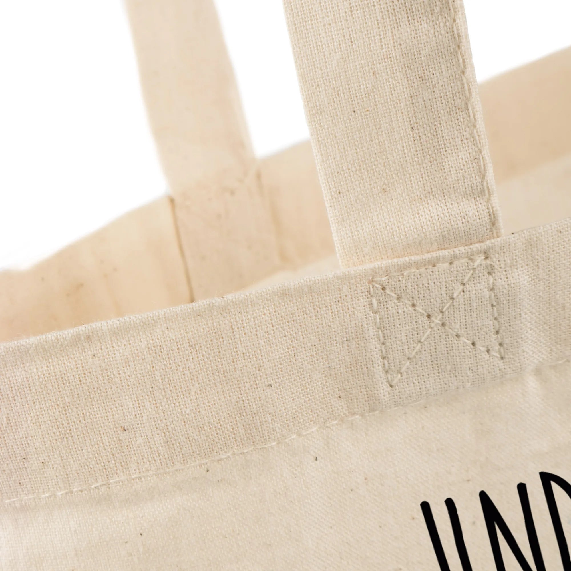 Gefertigt aus hochwertiger 100% Baumwolle und mit den Maßen 420 mm x 380 mm, bietet die Tasche ausreichend Platz für alles, was du mitnehmen möchtest. Der Stoff ist angenehm leicht (140g/m²) und durch die umsäumten und eingeschlagenen Innennähte bleibt die Tragetasche auch nach intensivem Gebrauch formbeständig. Die langen Tragegriffe (70 cm) sorgen für hohen Tragekomfort und die Cross Stitching-Technik an den Tragegriffen garantiert extra Stabilität.