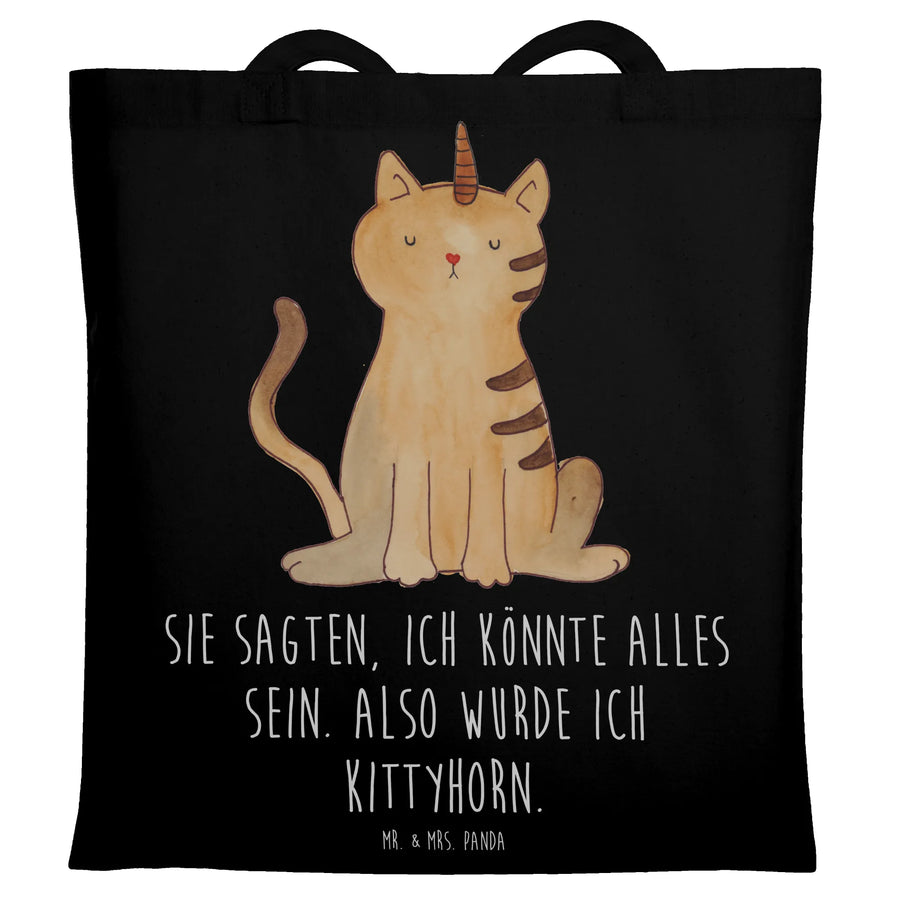 Entdecke die zauberhafte Tragetasche mit dem Motiv Einhorn Katze aus der Einhorn-Kollektion von Mr. & Mrs. Panda! Diese wundervolle Tragetasche ist nicht nur ein echter Hingucker, sondern auch das perfekte Geschenk für alle Liebhaber von Einhörnern und Katzen. Egal, ob für die beste Freundin, die Tochter oder vielleicht sogar für dich selbst – diese umweltfreundliche Stofftasche ist ideal für jeden Anlass. Mit ihrem charmanten Design und dem frechen Spruch "Sie sagten, ich könnte alles sein. Also wurde ich Kittyhorn." verbindet sie die faszinierende Welt der Einhörner mit der Niedlichkeit von Katzen.
