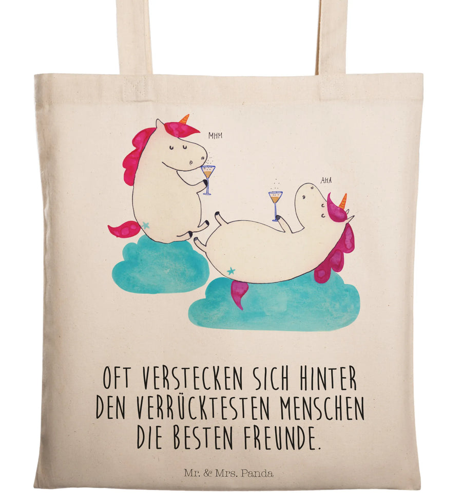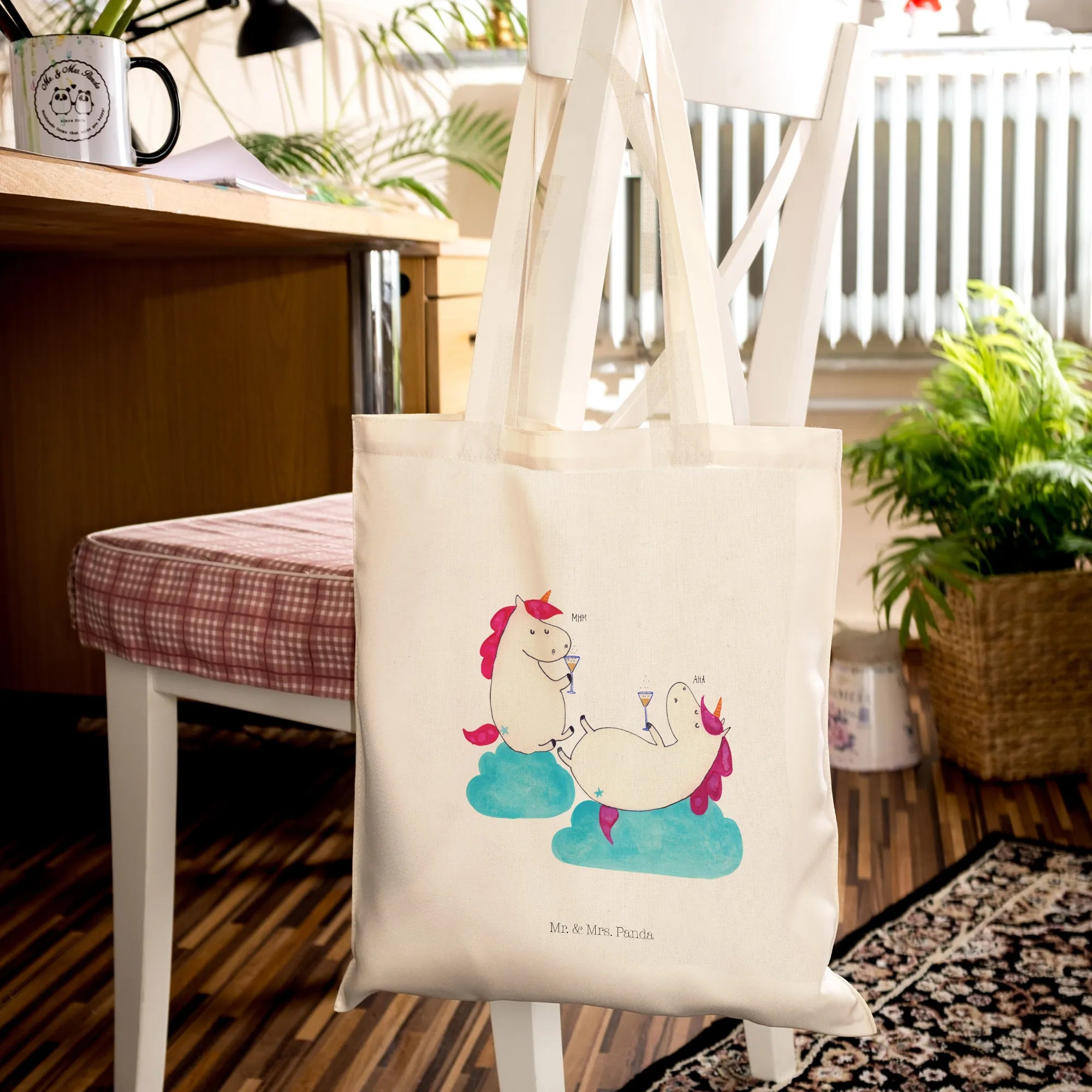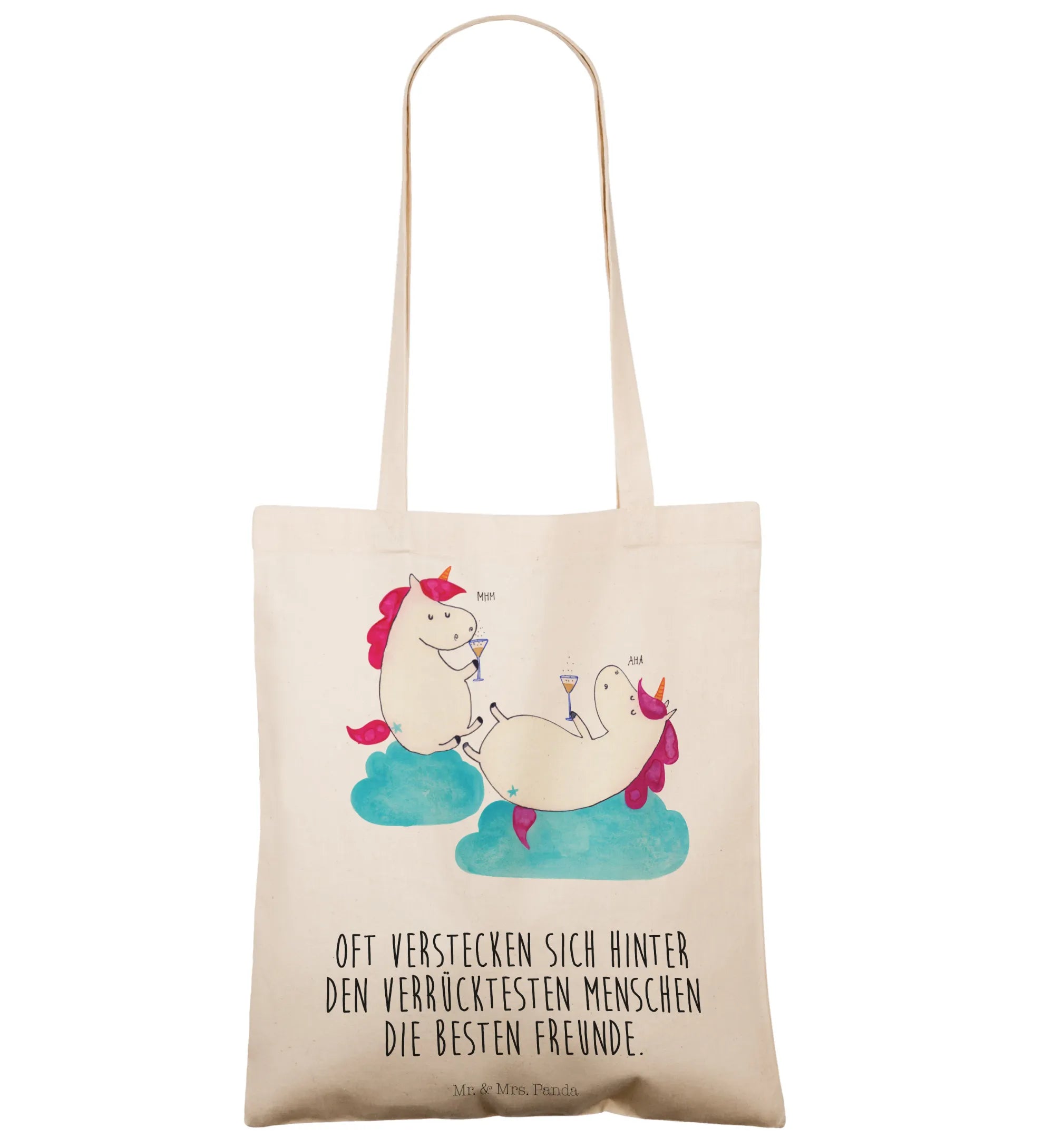 Einfach bezaubernd! Die Tragetasche mit dem fröhlichen Einhorn-Motiv "Einhörner Sekt" aus der Einhorn-Kollektion von Mr. & Mrs. Panda ist das perfekte Geschenk für deine beste Freundin – ob zum Mädelsabend oder als liebevolle Überraschung für jeden Anlass!