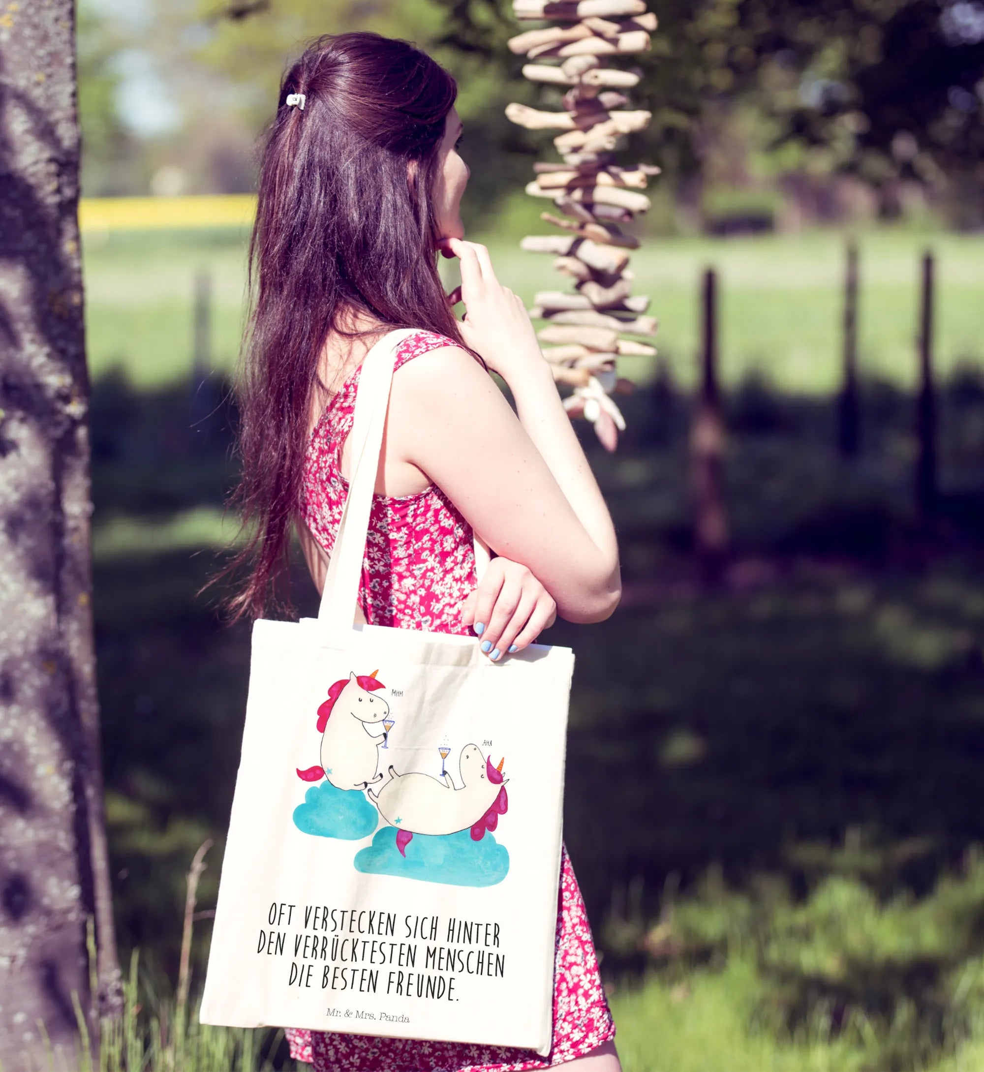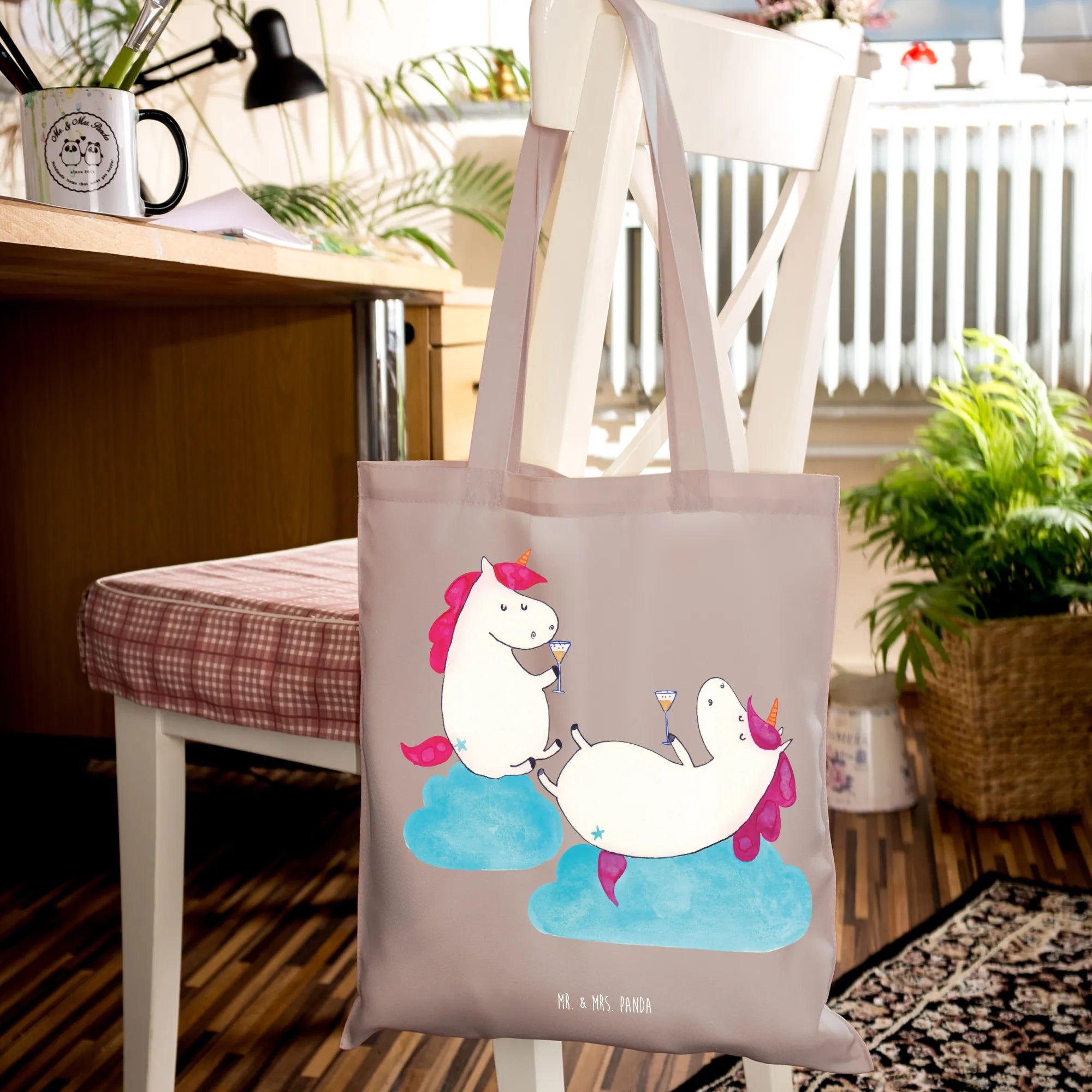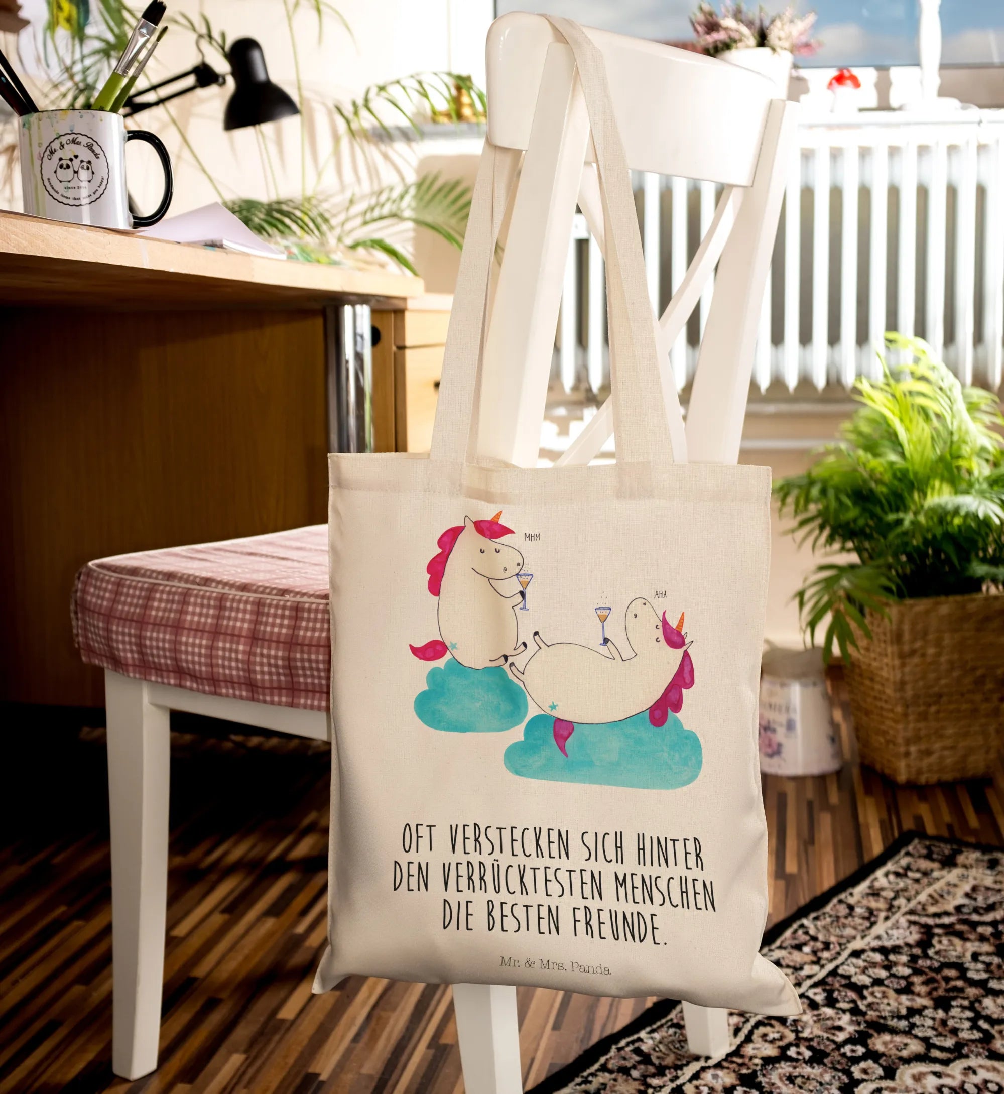 Einfach bezaubernd! Die Tragetasche mit dem fröhlichen Einhorn-Motiv "Einhörner Sekt" aus der Einhorn-Kollektion von Mr. & Mrs. Panda ist das perfekte Geschenk für deine beste Freundin – ob zum Mädelsabend oder als liebevolle Überraschung für jeden Anlass!
