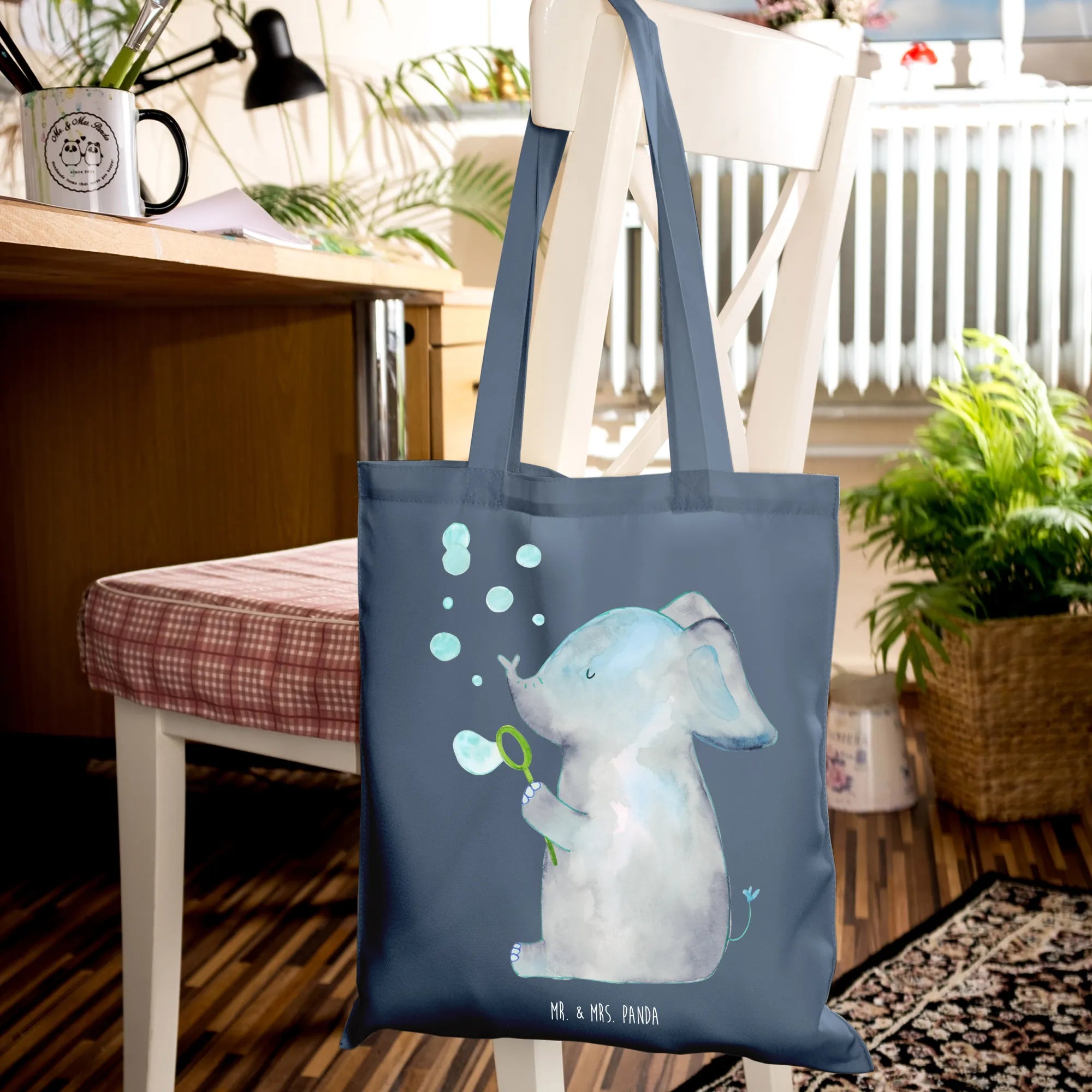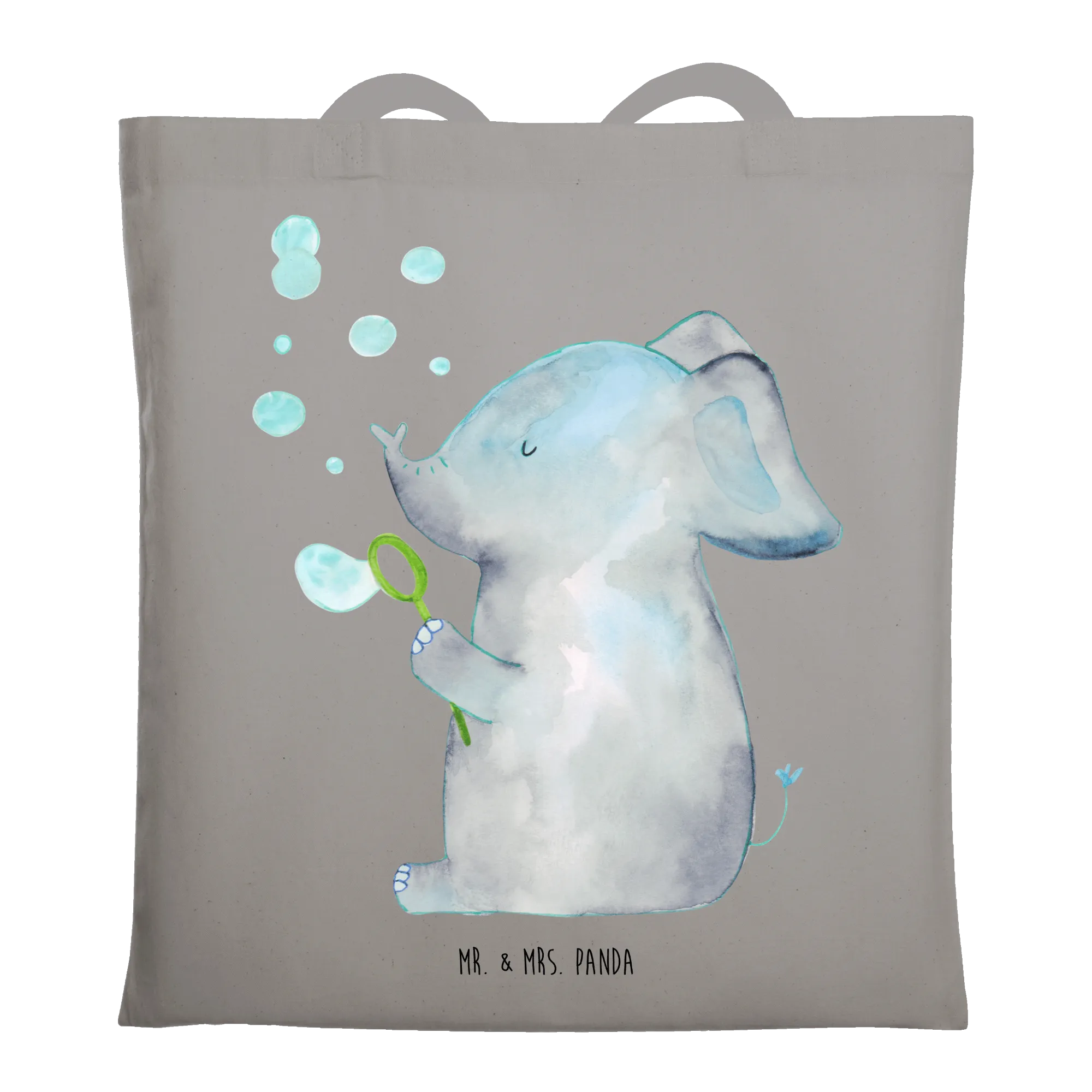 Entdecke die bezaubernde Tragetasche "Elefant Seifenblasen" aus der Small World Kollektion von Mr. & Mrs. Panda! 🐘✨ Dieser süße Elefant, der bunte Seifenblasen in die Luft pustet, bringt Freude und Unbeschwertheit in deinen Alltag.