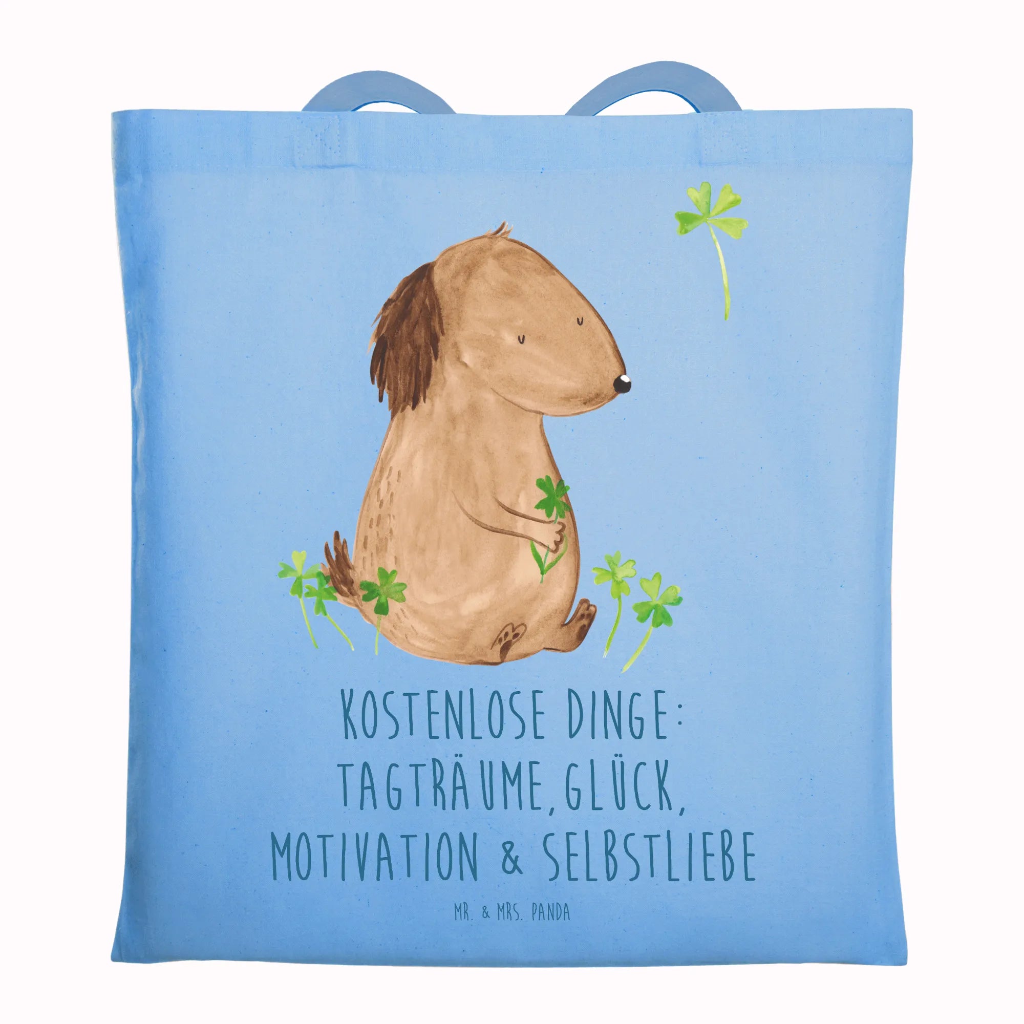 Die Tragetasche mit dem süßen Hund Kleeblatt Motiv aus der Hunde Kollektion von Mr. & Mrs. Panda ist das perfekte Geschenk für jeden Tierliebhaber! Sie vereint sowohl Stil als auch praktische Anwendung und ist somit ideal für alle, die ihren Alltag mit einem Hauch von Freude und Liebe bereichern möchten.