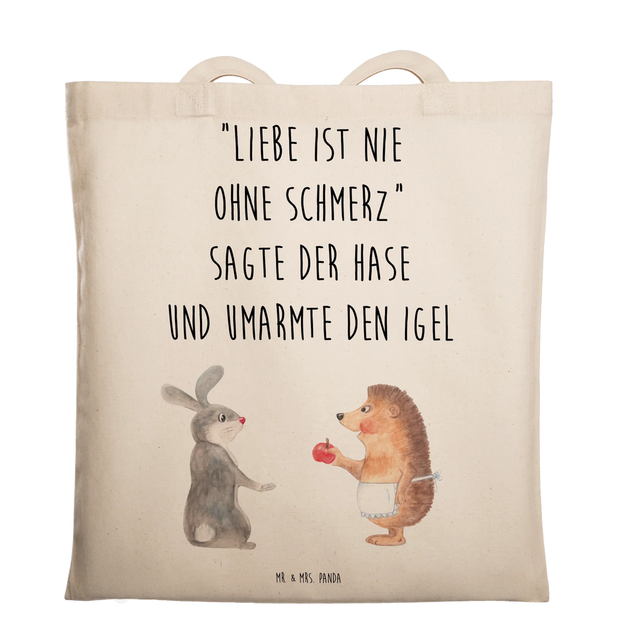 Entdecke die wundervolle Tragetasche "Liebe ist nie ohne Schmerz" aus der Small World Kollektion von Mr. & Mrs. Panda! 🌍💕 Diese bezaubernde Stofftasche verbindet stilvolles Design mit einer tiefen Botschaft über die Liebe. Mit dem süßen Motiv des Hasen und des Igels, die sich innig umarmen, erinnert dich jede Verwendung dieser Tasche daran, dass die Liebe manchmal schmerzhaft sein kann, aber auch stark und wunderschön ist.