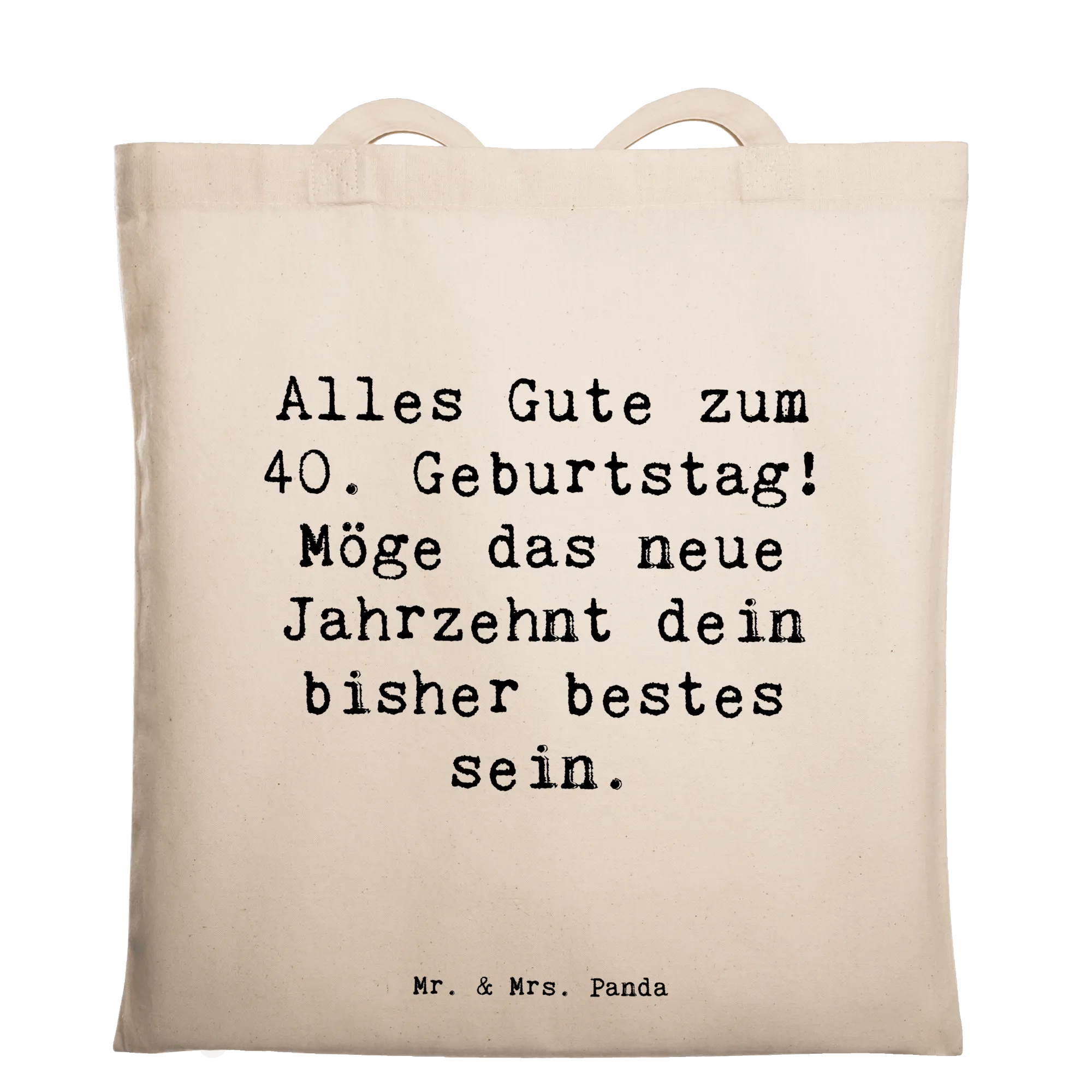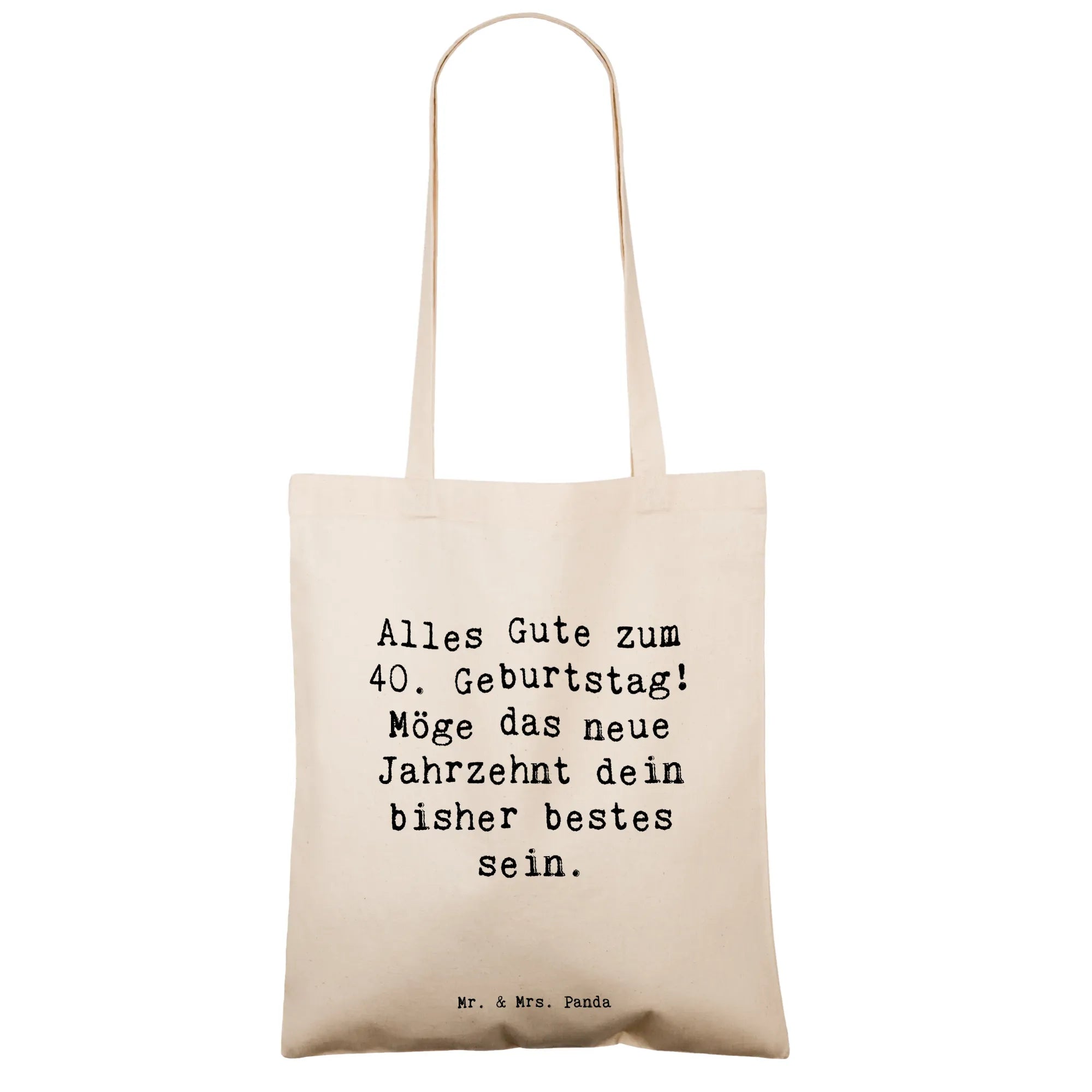 Die wunderschöne Tragetasche von Mr. & Mrs. Panda ist das perfekte Geschenk zum 40. Geburtstag! Der Slogan "Alles Gute zum 40. Geburtstag! Möge das neue Jahrzehnt dein bisher bestes sein." macht sie zu einem wunderbaren Geburtstagsgeschenk.