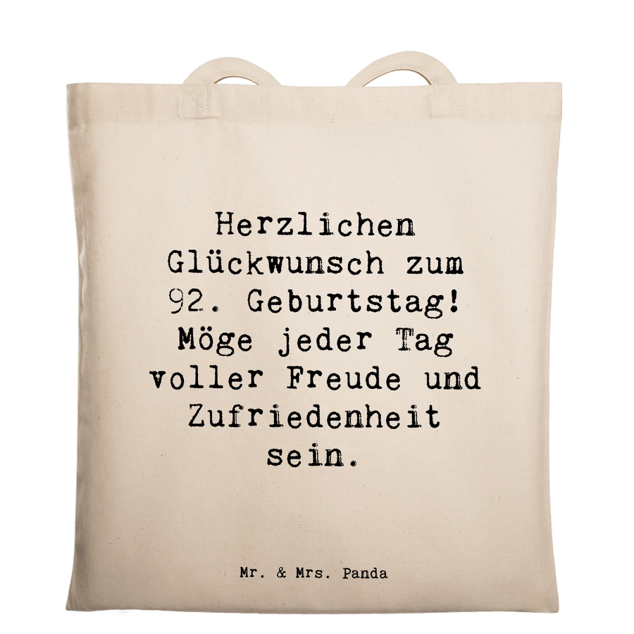 Tasche Spruch 92. Geburtstag Freude - Transparent