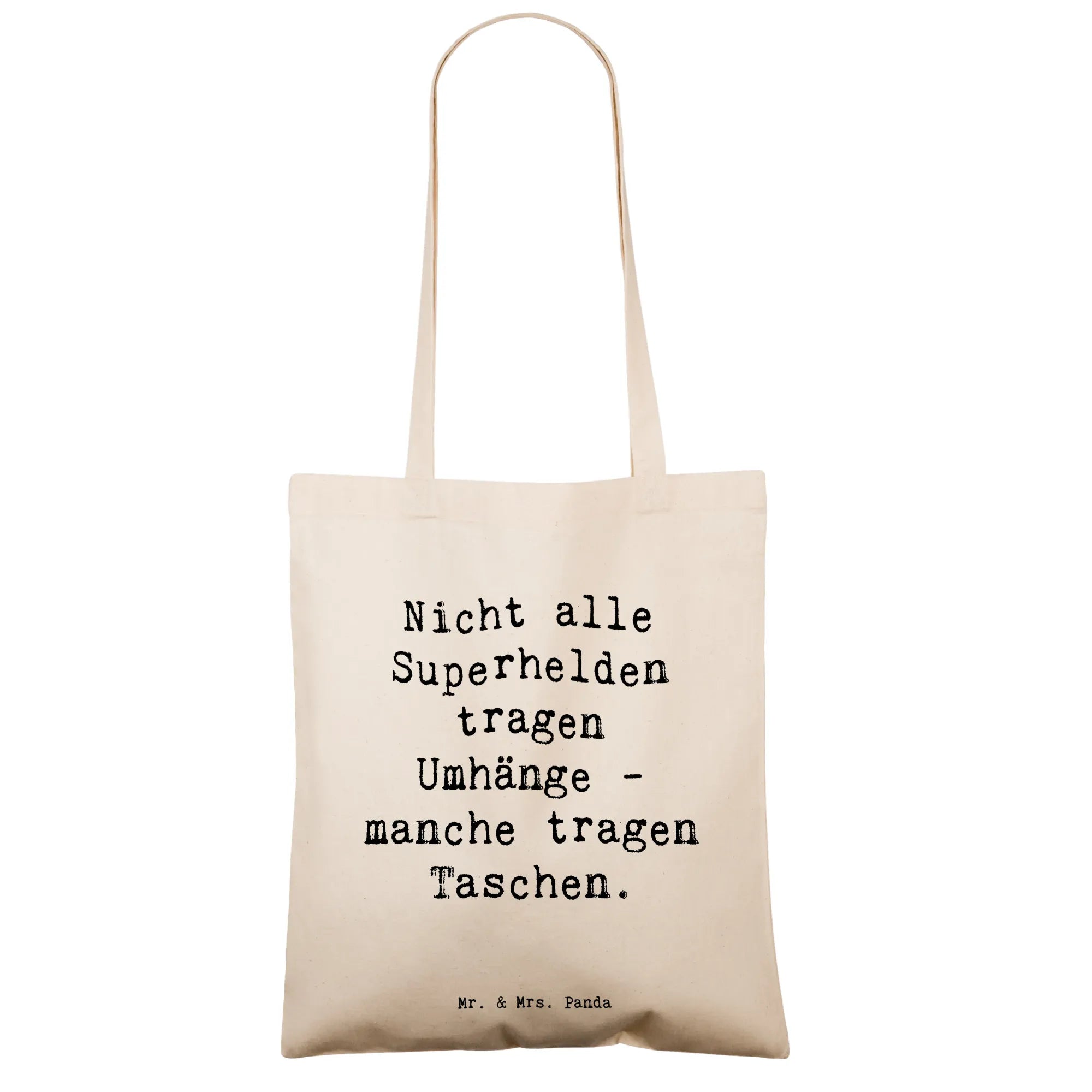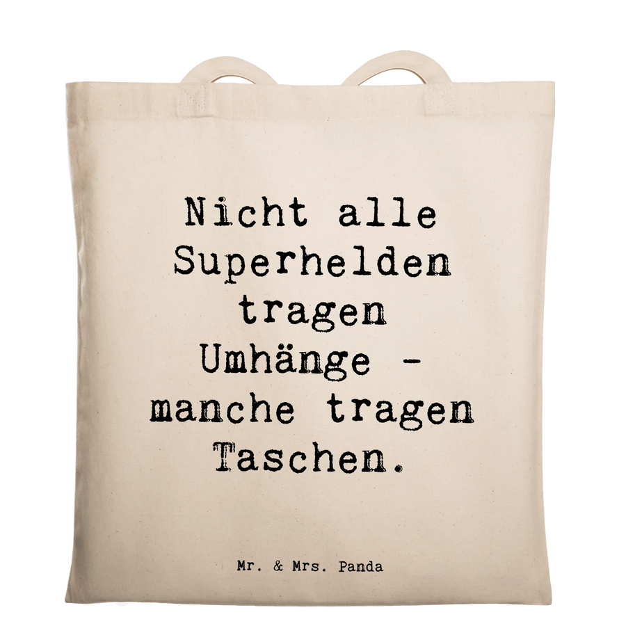 Die Tragetasche von Mr. & Mrs. Panda ist nicht nur ein praktischer Begleiter, sondern auch ein echtes Statement! Hochwertig bedruckt mit dem inspirierenden Spruch „Nicht alle Superhelden tragen Umhänge - manche tragen Taschen“, bringt sie jeden zum Schmunzeln und zaubert ein Lächeln aufs Gesicht.