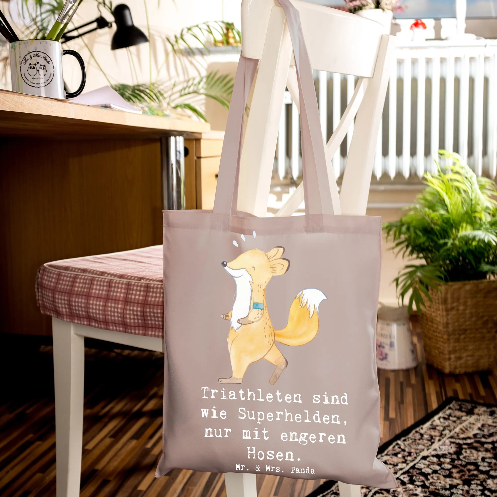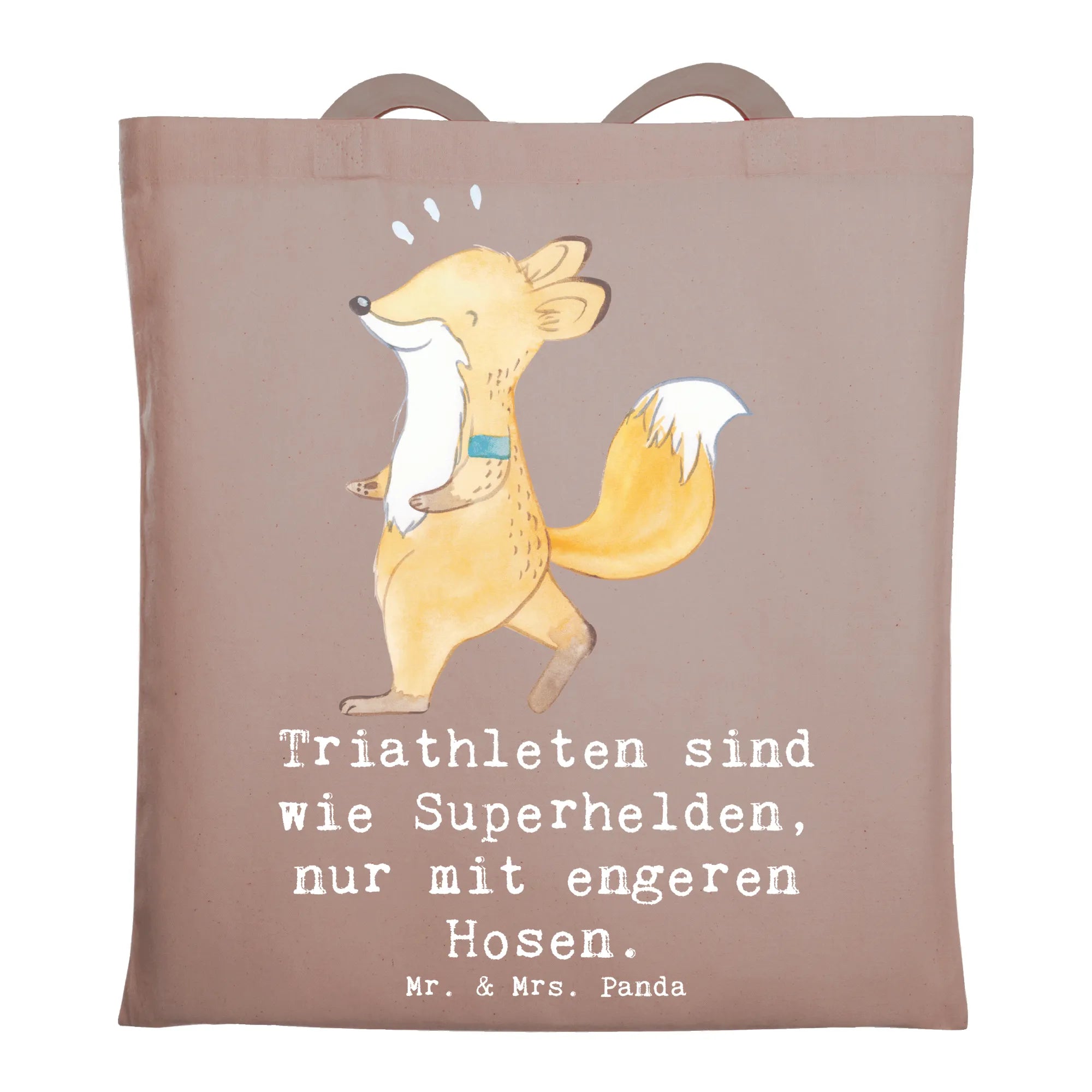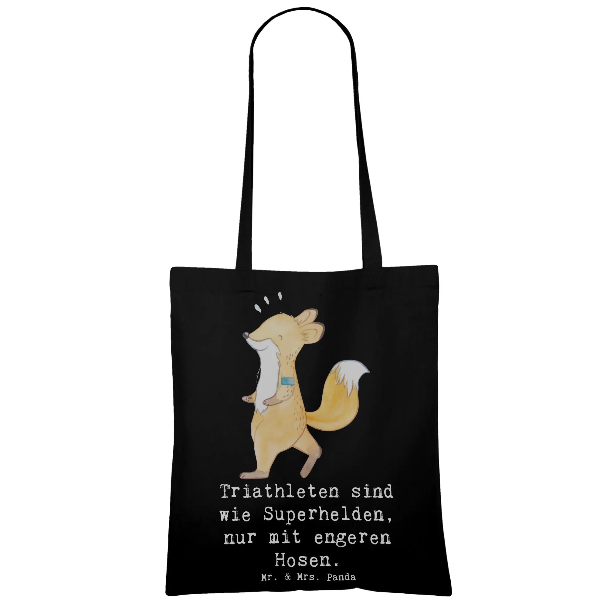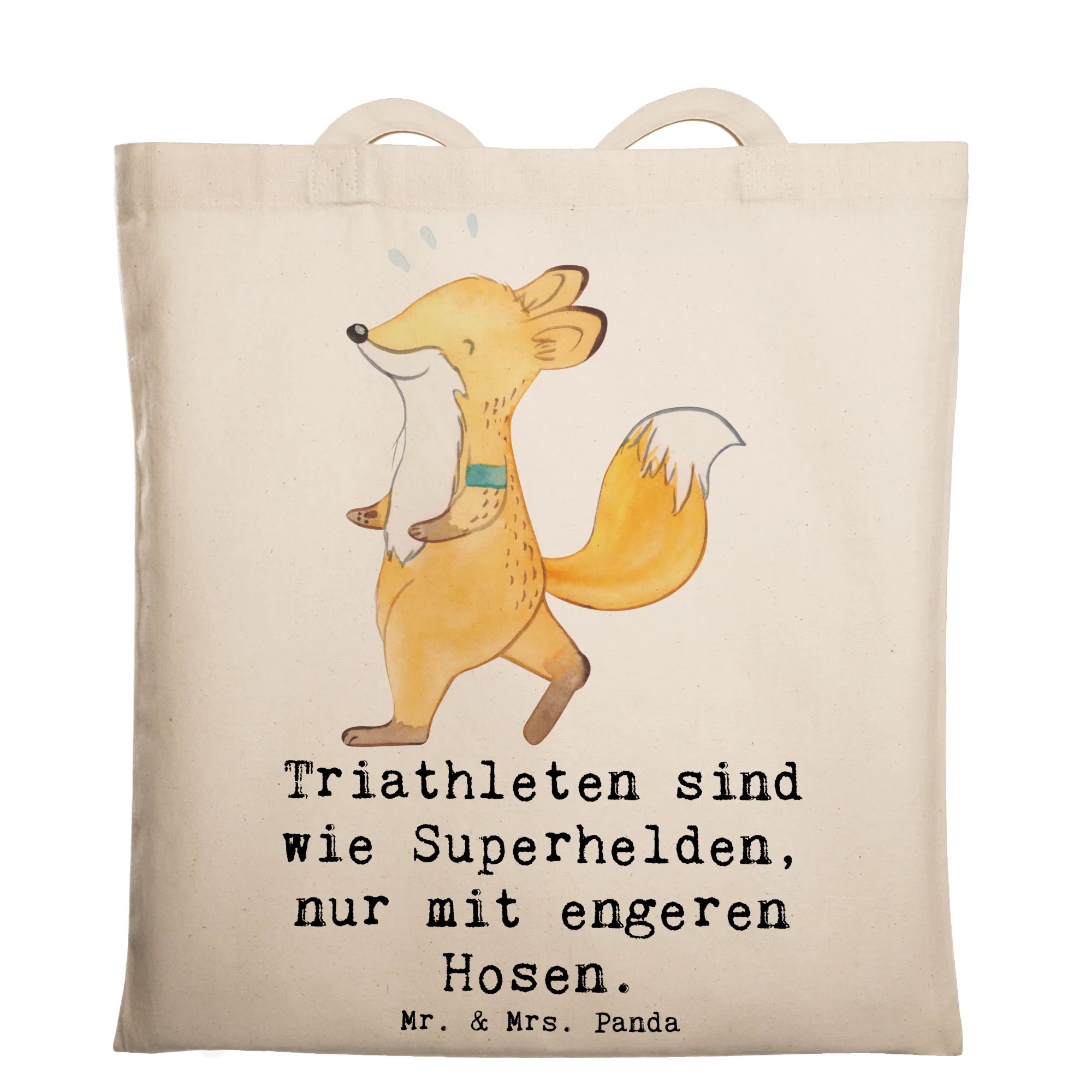 Die perfekte Tragetasche für Triathleten und Sportliebhaber! Unsere Tragetasche von Mr. & Mrs. Panda mit dem süßen Motiv "Triathleten sind wie Superhelden, nur mit engeren Hosen" ist nicht nur ein echtes Highlight, sondern auch extrem praktisch.