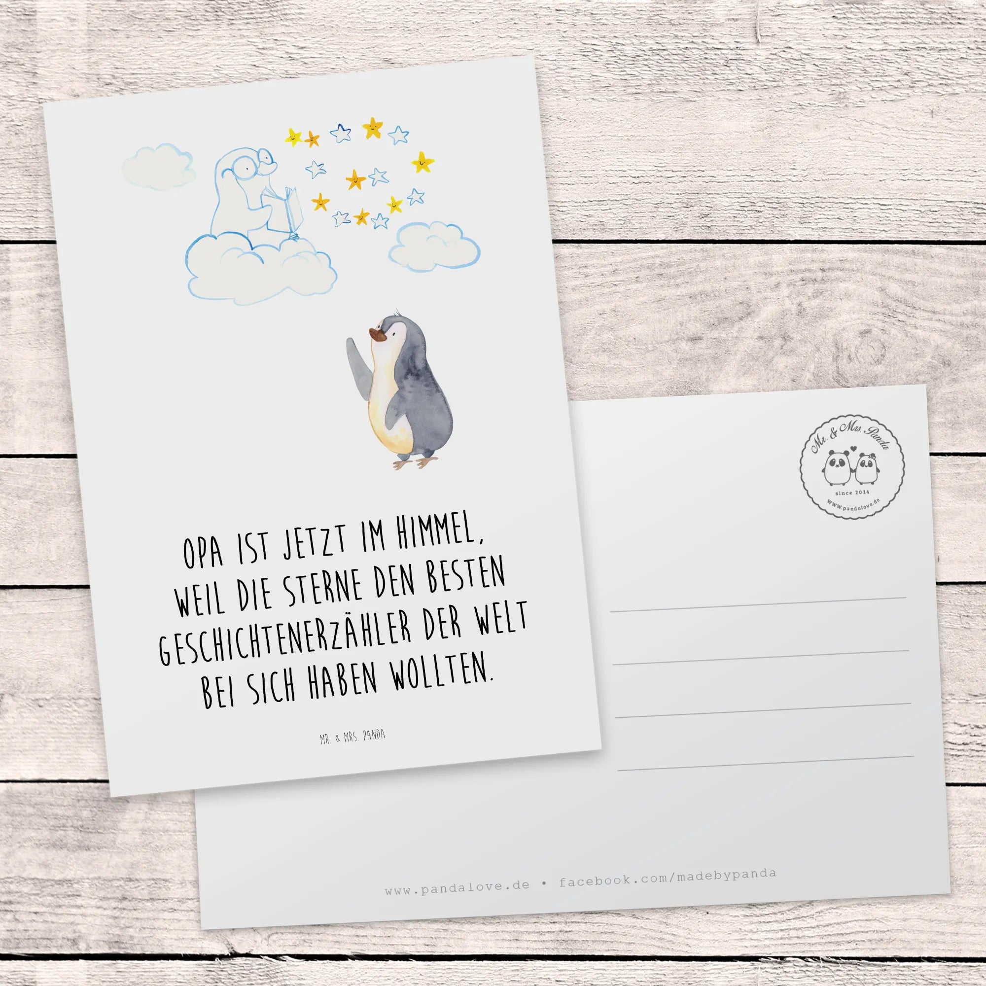 Die wunderschöne Trauerkarte "Pinguin Opa Sterne" von Mr. & Mrs. Panda bietet eine einfühlsame Möglichkeit, dein Beileid auszudrücken.
