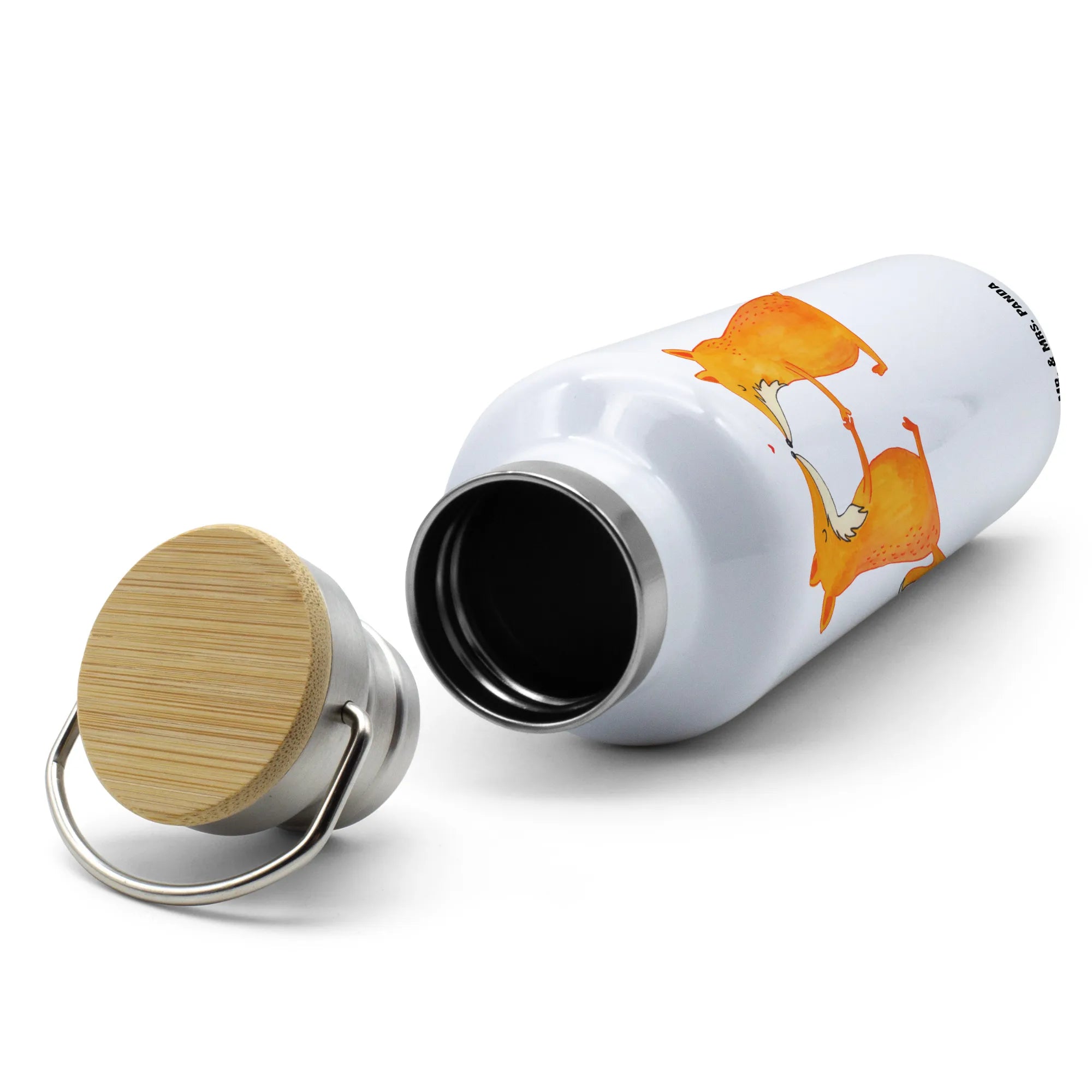Hol dir die stylische Trinkflasche von Mr. & Mrs. Panda! Sie überzeugt nicht nur durch ihre schöne Optik, sondern auch durch Funktionalität. Mit 750 ml Füllvolumen ist sie ausreichend für all deine Durstlöscher. Der doppelwandige Edelstahl sorgt dafür, dass deine Getränke perfekt temperiert bleiben, egal ob heiß oder kalt. Mit einer Höhe von 255 mm und einem Durchmesser von 78 mm passt sie in fast jeden Becherhalter. Ihr robuster Bambusdeckel rundet das Design ab. Egal, ob du in die Berge gehst, ins Büro oder in die Schule, diese Flasche ist ein treuer Begleiter. Die Drucke mit Sprüchen und den süßen Motiven von Mr. & Mrs. Panda machen jeden Schluck zu einem kleinen Erlebnis. Bitte denke daran, dass sie nicht spülmaschinenfest ist – am besten mit der Hand reinigen!