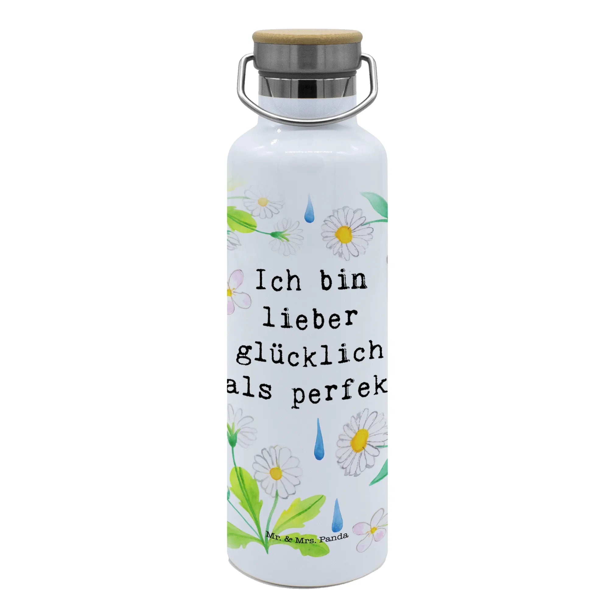 Die Trinkflasche „Lieber glücklich als perfekt“ aus der Sammlung Wild & Free von Mr. & Mrs. Panda ist nicht nur ein schöner Anblick, sondern auch ein echter Alleskönner! Mit einem Fassungsvermögen von 750 ml und der doppelwandigen Isolierung hält sie deine Getränke stundenlang warm oder kalt – perfekt für jeden Tag. Egal, ob du sie für eine Wanderung in der Natur, im Büro, in der Schule oder der Uni benötigst, diese Edelstahl-Trinkflasche ist immer an deiner Seite!