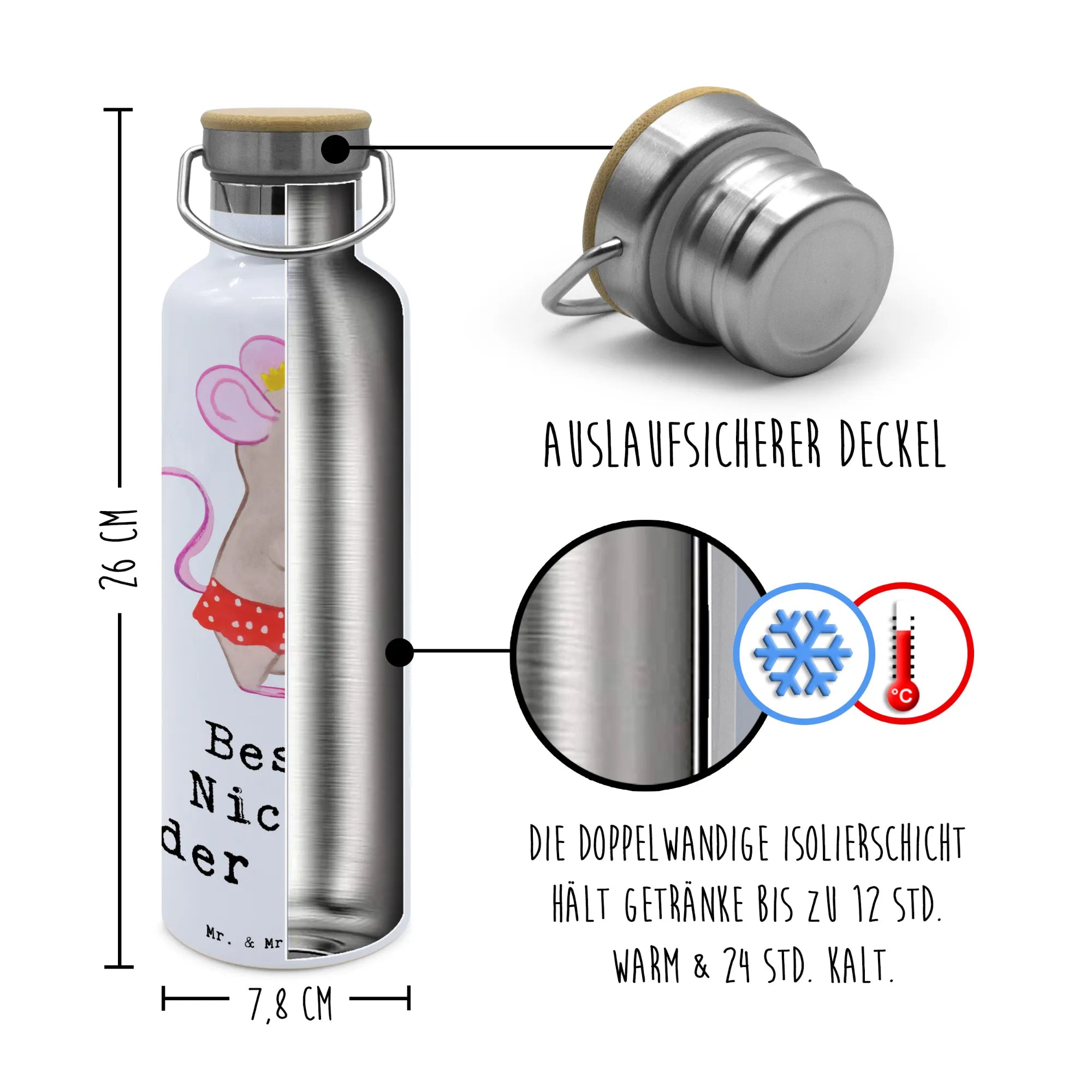 Hol dir die stylische Trinkflasche von Mr. & Mrs. Panda! Sie überzeugt nicht nur durch ihre schöne Optik, sondern auch durch Funktionalität. Mit 750 ml Füllvolumen ist sie ausreichend für all deine Durstlöscher. Der doppelwandige Edelstahl sorgt dafür, dass deine Getränke perfekt temperiert bleiben, egal ob heiß oder kalt. Mit einer Höhe von 255 mm und einem Durchmesser von 78 mm passt sie in fast jeden Becherhalter. Ihr robuster Bambusdeckel rundet das Design ab. Egal, ob du in die Berge gehst, ins Büro oder in die Schule, diese Flasche ist ein treuer Begleiter. Die Drucke mit Sprüchen und den süßen Motiven von Mr. & Mrs. Panda machen jeden Schluck zu einem kleinen Erlebnis. Bitte denke daran, dass sie nicht spülmaschinenfest ist – am besten mit der Hand reinigen!