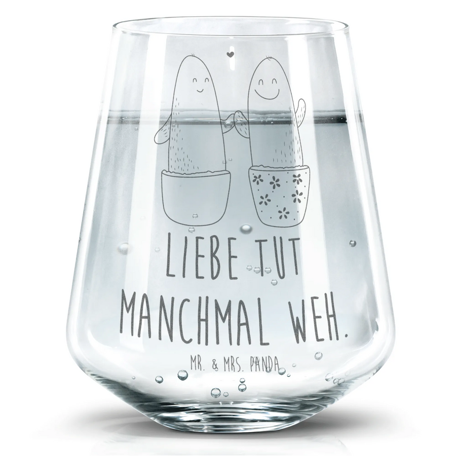 Das Motiv zeigt zwei fröhliche Kaktusse, die liebevoll in Aquarell gemalt wurden und einander anblicken, während die eingravierte Botschaft "Liebe tut manchmal weh." die emotionale Tiefe des Designs perfekt unterstreicht. Dieses Trinkglas ist somit nicht nur ein praktisches Küchenutensil, sondern auch der ideale Liebesbeweis für besondere Anlässe, wie einen Hochzeitstag, eine Verlobung oder einfach nur als kleine Aufmerksamkeit für einen lieben Freund.