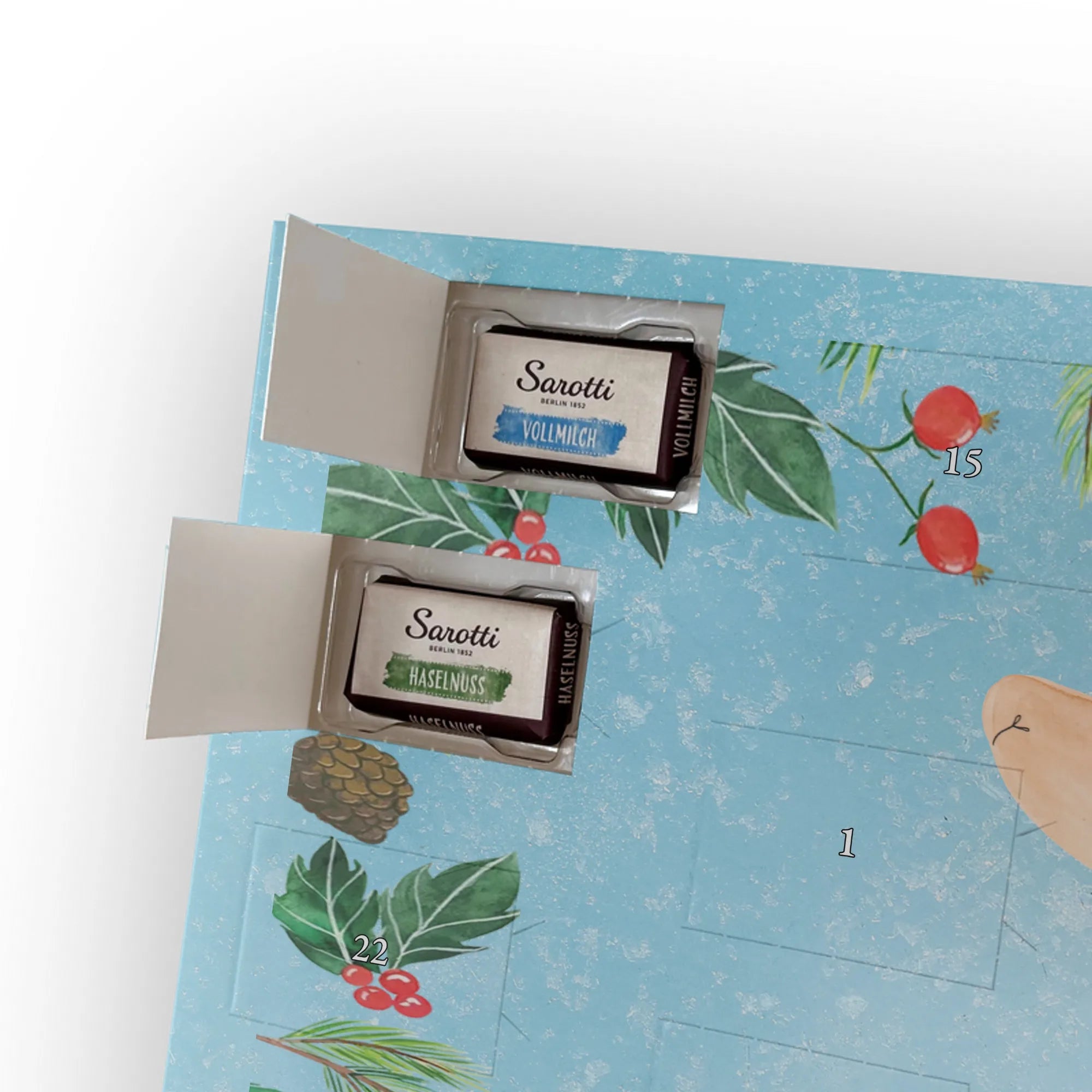 🐼 Schokoladen Adventskalender mit liebevollen Sprüchen und seidenmatter Lackierung.