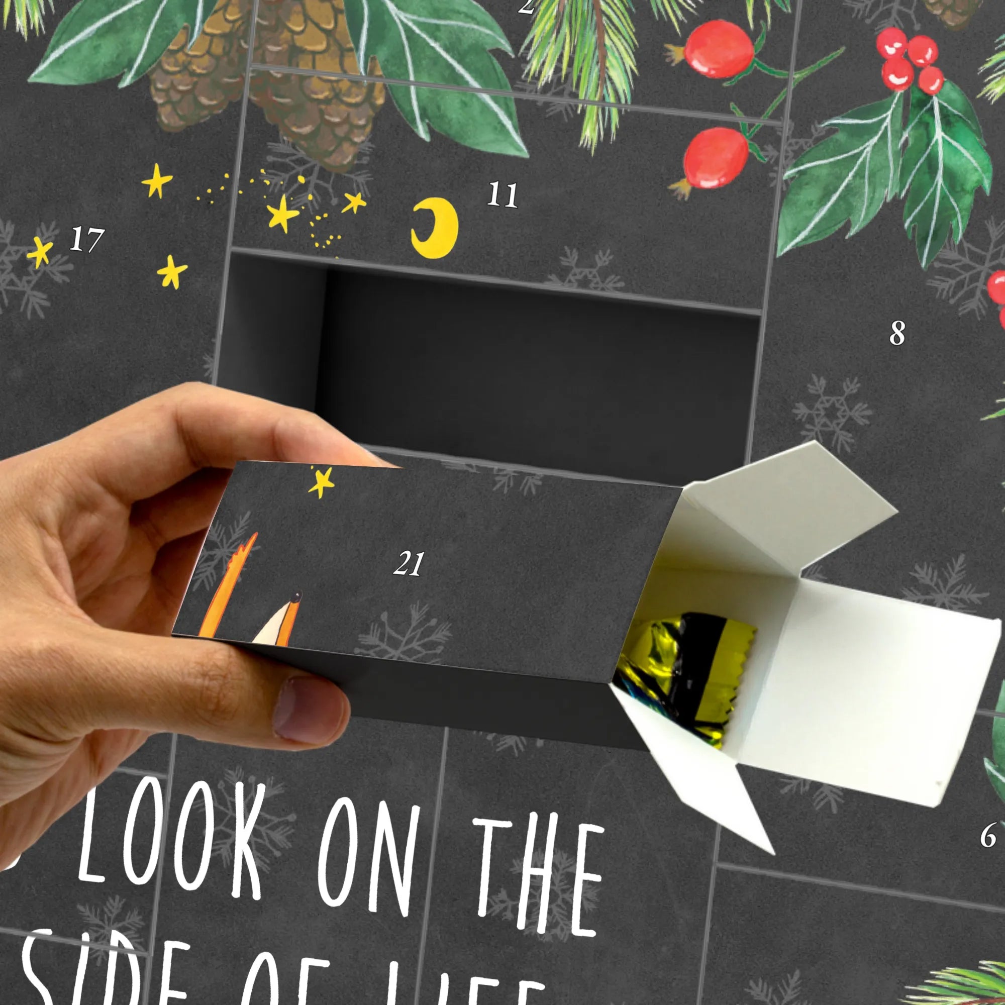 Der Spruch "Always look on the bright side of life" erinnert uns daran, die positiven Seiten des Lebens zu schätzen, und macht ihn zum idealen Begleiter durch die Adventszeit. Mit 24 Schachteln zum Selbstbefüllen verwandelt sich dieser Adventskalender in ein ganz persönliches Geschenk, das jeden Tag neue Überraschungen bereithält.